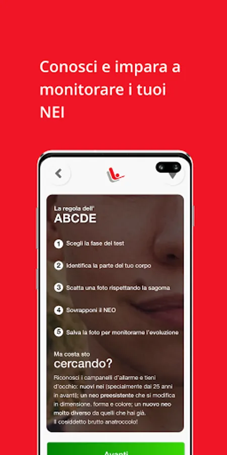 With Skintip you learn how to protect yourself from the sun with personalized advice on your skin, do prevention and keep an eye on your skin. How? Simple: identify a part of your body, take a picture and superimpose the mole. Then save the photo to track over time.