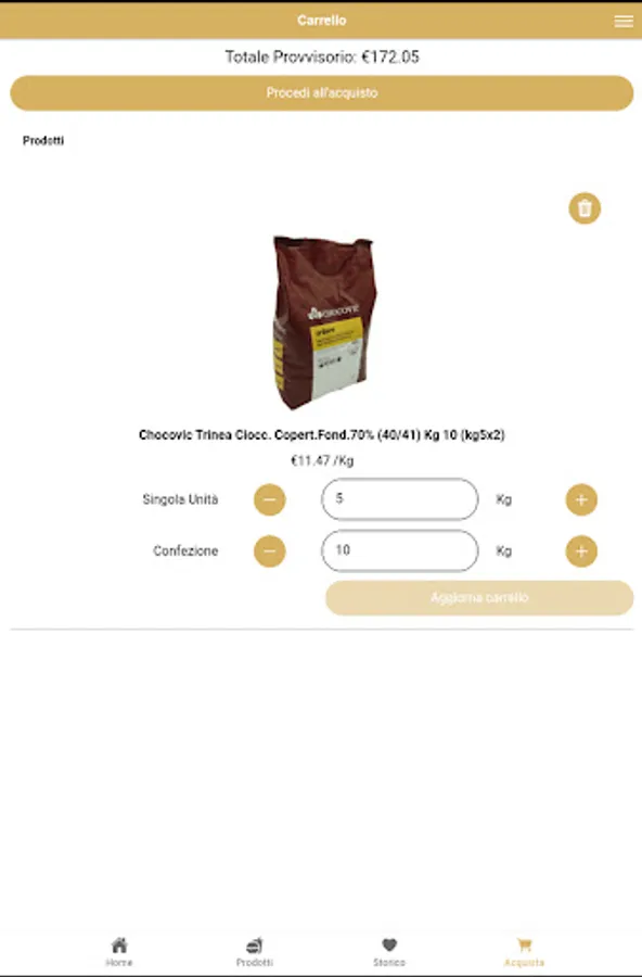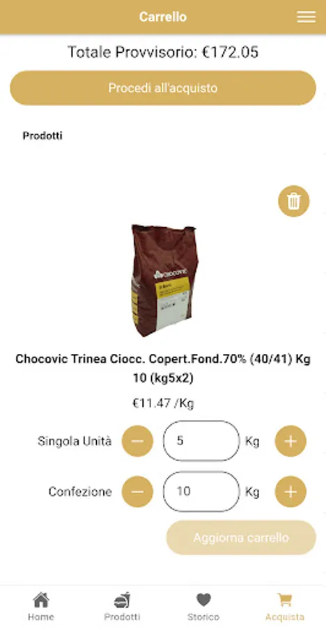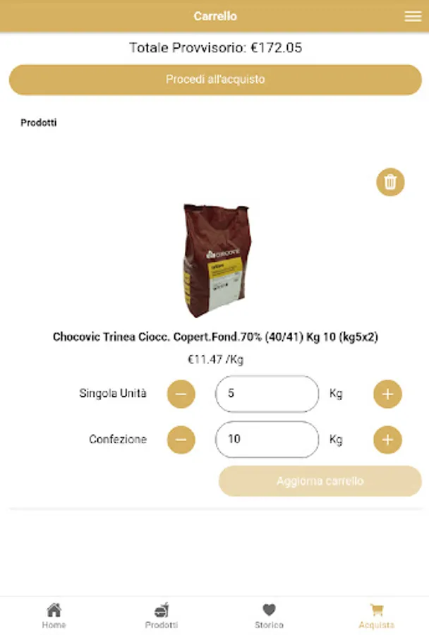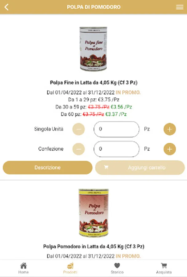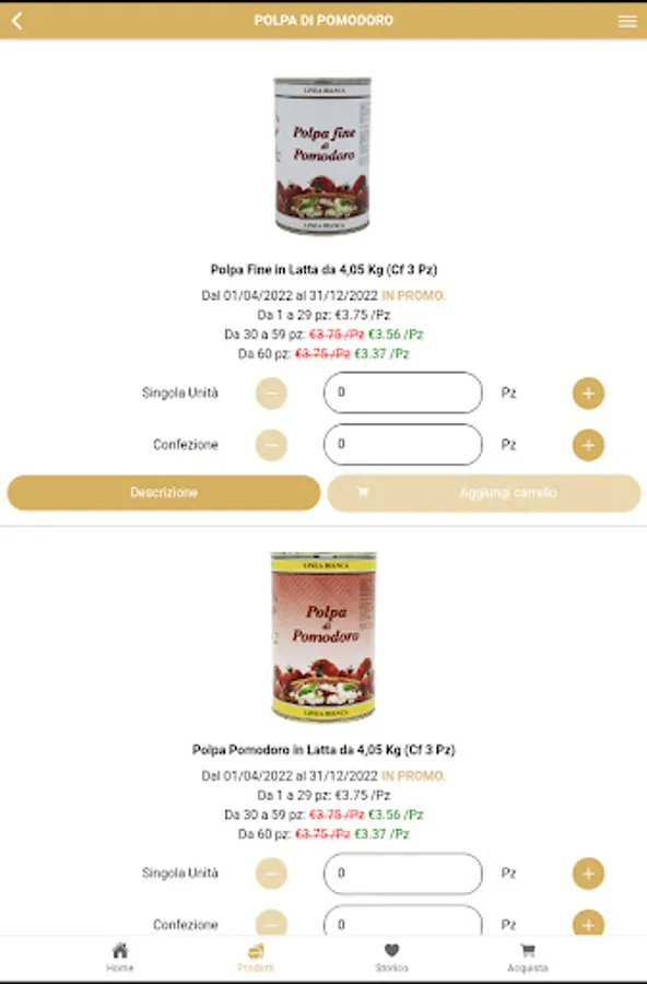 See the history of your purchases, divided by category, to facilitate you in subsequent orders.