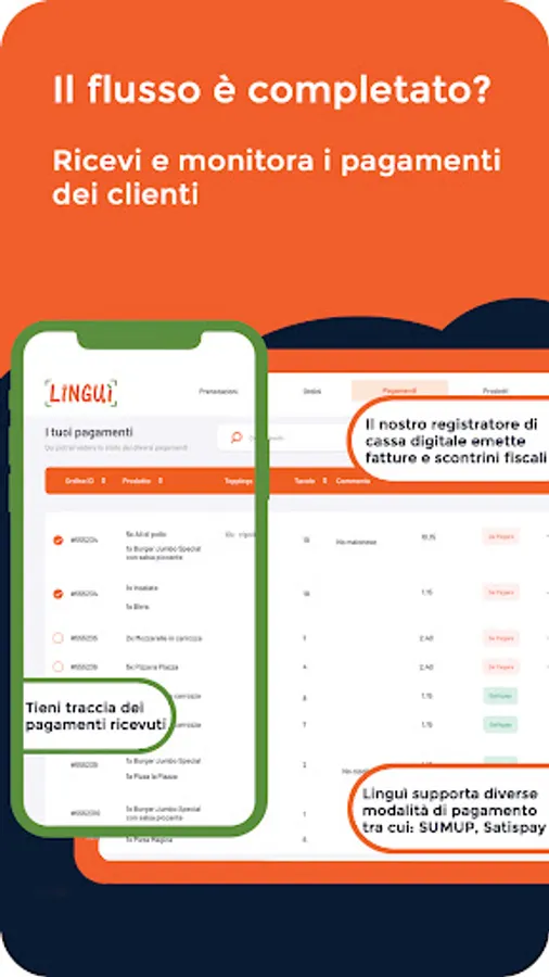 Pay directly in the app with electronic payment methods. With Linguì you can pay on a single, separate or Roman-style account.