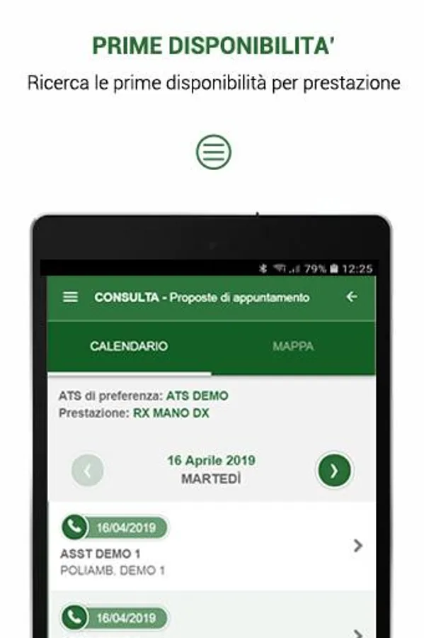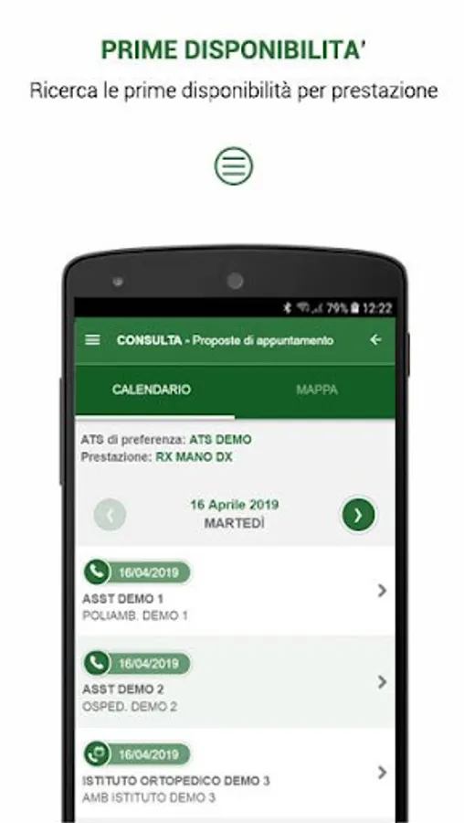 The app allows you to book directly in the integrated real-time healthcare facilities with the Regional Booking Network. The private facilities accredited with the SSN against a booking request sent via the app will call you back to set the desired appointment.