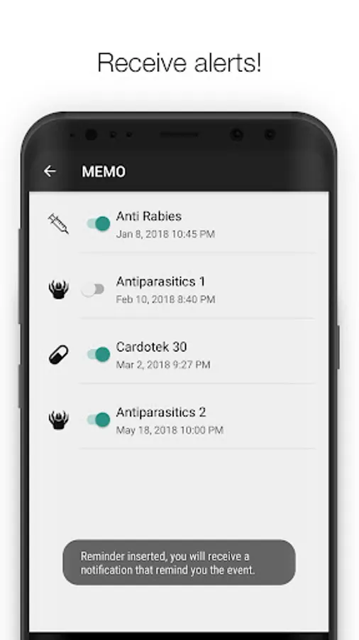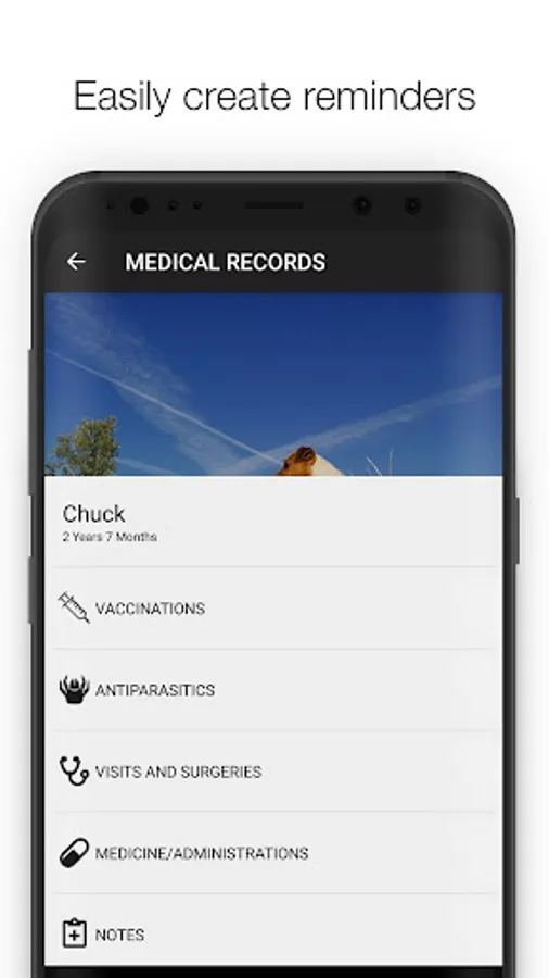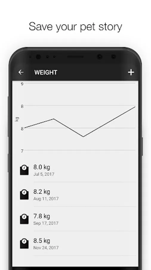 - Store your dog's personal data such as name, weight, date of birth, chip.