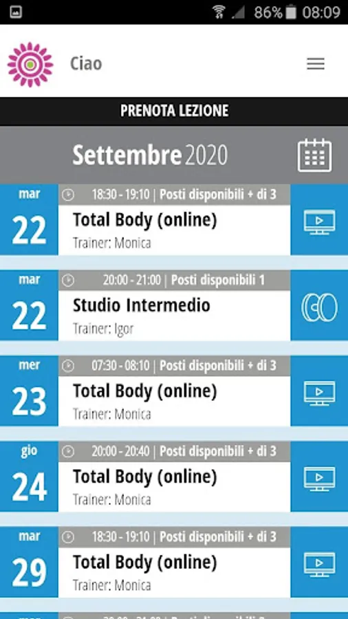 View the calendar with the description of the courses and lessons of the sports center where you are registered.
