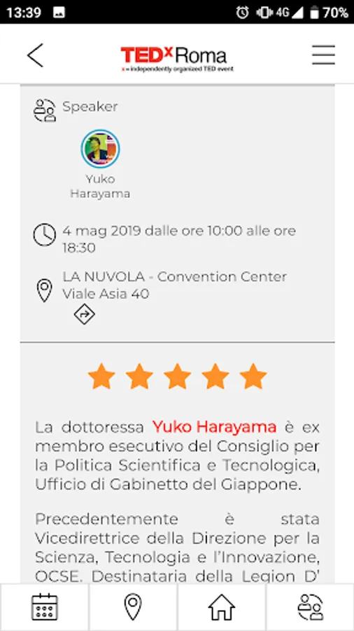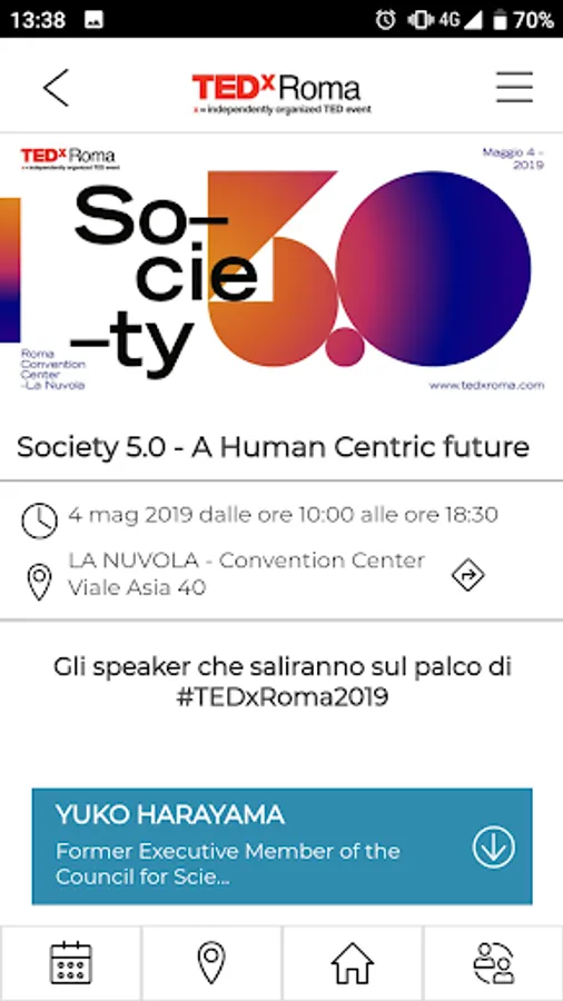 TEDxRoma is one of the largest TEDx events by number of participants in Italy. It is independently organized under a TED license. TEDxRoma encourages and supports the dissemination of brilliant, innovative and creative ideas to stimulate change, offering the public the opportunity to listen to live contributions from speakers from all over the world, generating a continuous exchange of ideas and a strong connection between the participants.