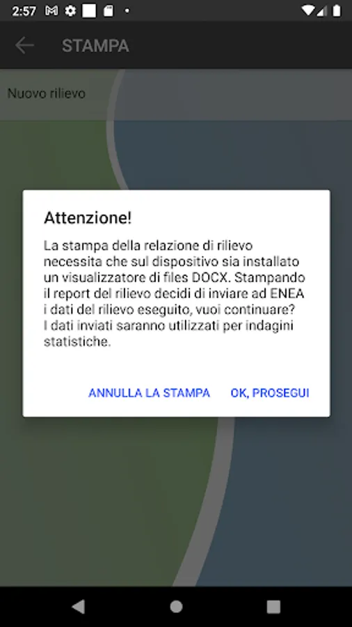 - a report in .DOCX format that contains all the data of the survey carried out, to view the survey report it is necessary that a viewer of DOCX Files is installed on the device;