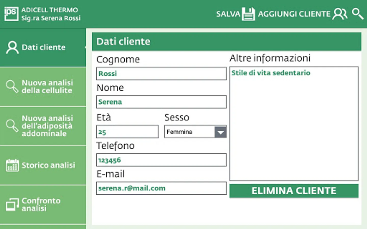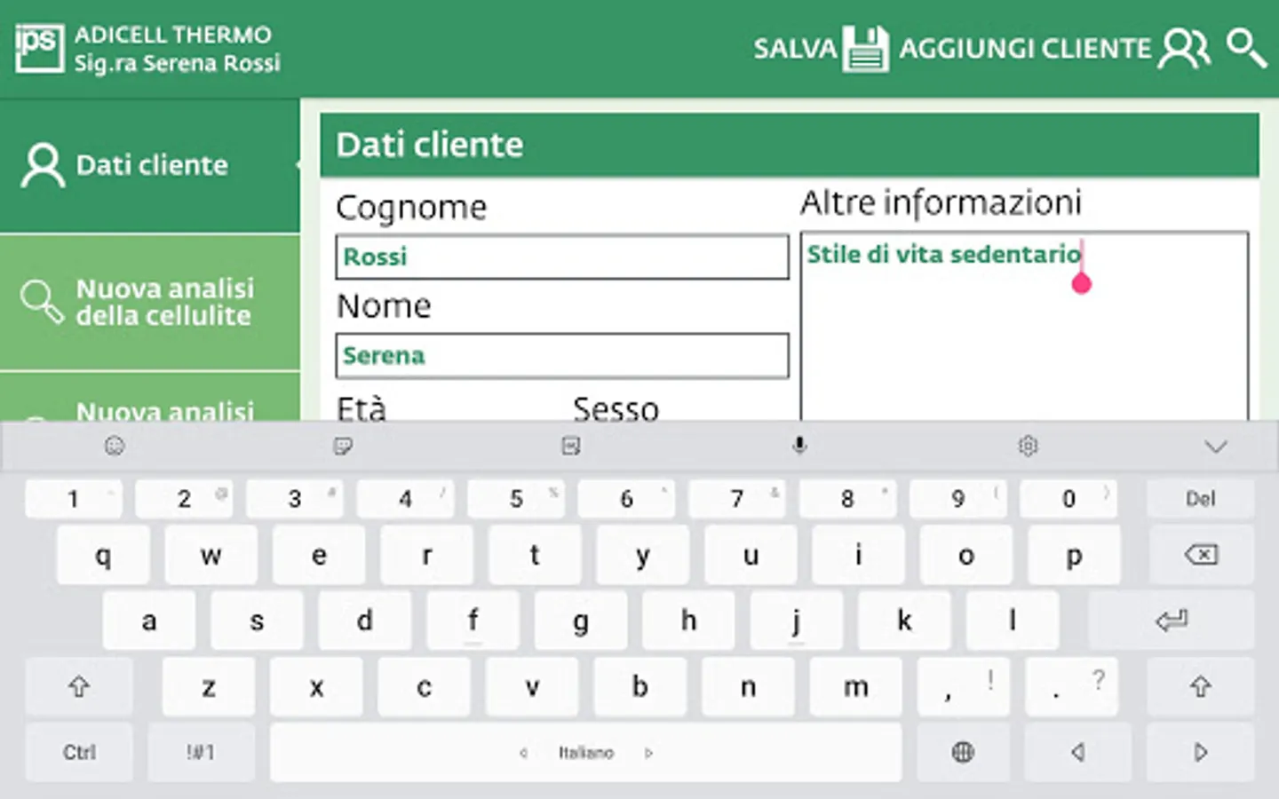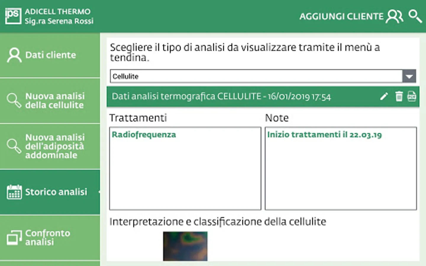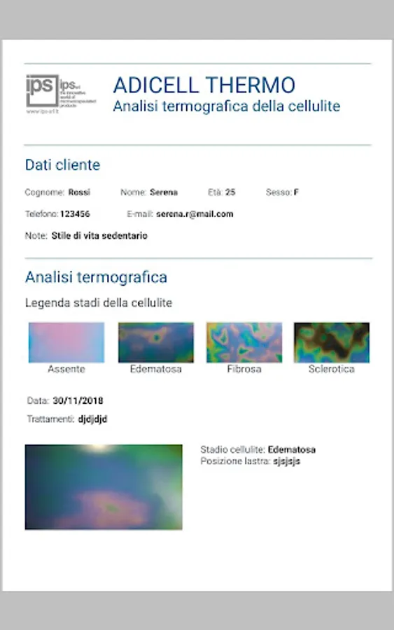 Adicell AI – a simple and intuitive app for the thermographic analysis of cellulite and abdominal fat. Install this app on your tablet to enter customer data in a digital archive, to save thermographic images in customer cards, to get immediate help in assessing the level of cellulite and the type of adiposity. Review the thermographic tests carried out previously, compare BEFORE and AFTER treatment to demonstrate to your customers the effectiveness of your work and build their loyalty. Print and e-mail PDF files of thermographic tests.