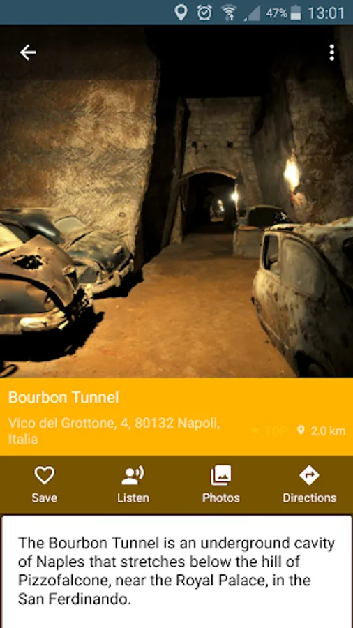 Each point of interest is provided of a multi-language description, photo gallery, visiting times and contacts.