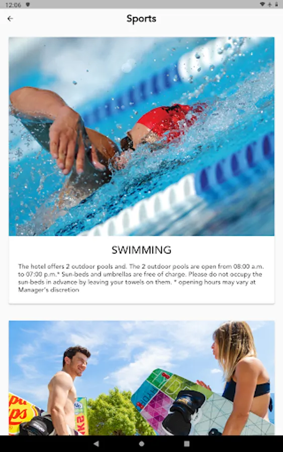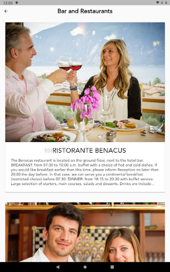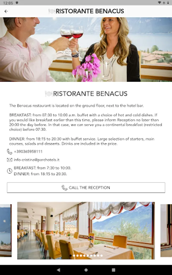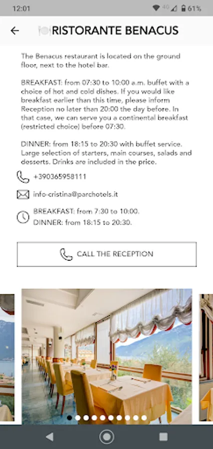Breakfast is served buffet style, with a large selection of hot and cold, sweet and savoury food. Dinner is also served in a buffet, with a choice of Italian dishes. You can have an à la carte lunch at “La Terrazza” grill bar.