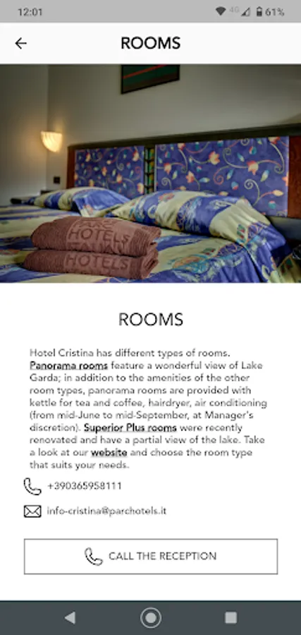 You will stay in spacious and cosy rooms, fitted with all the amenities: satellite TV, minibar, private bathroom. Many rooms also have a balcony; some of them also have a view of Lake Garda.