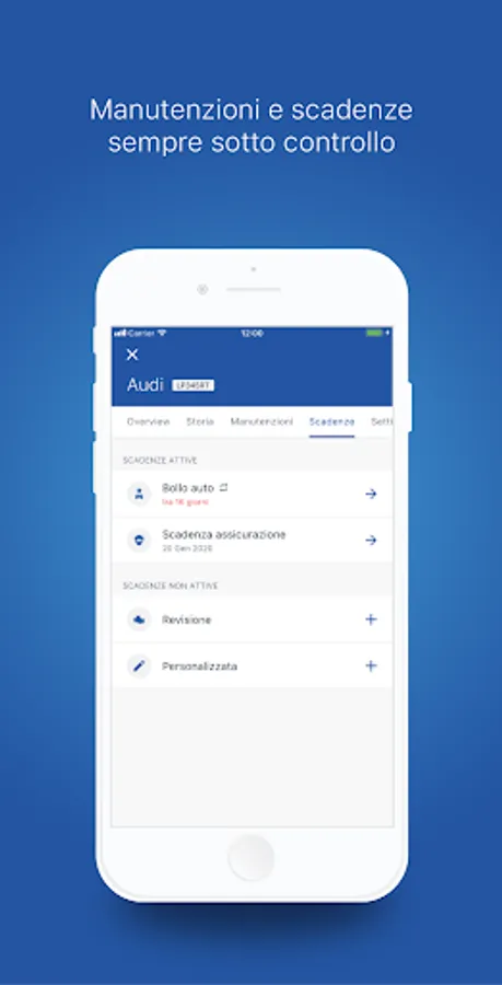 ENTER THE MAINTENANCE AND DEADLINES DATA and remember the next revision, the expiry of the insurance policy or to change tires on your vehicle will no longer be a problem. No more forgetfulness!