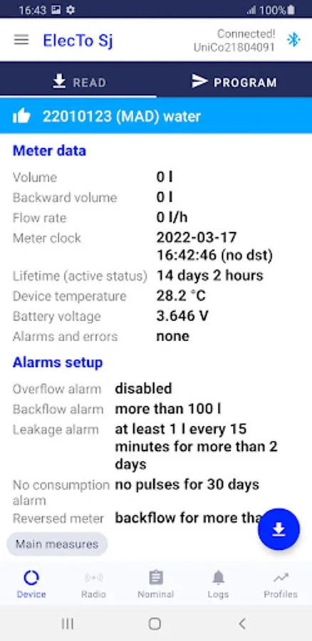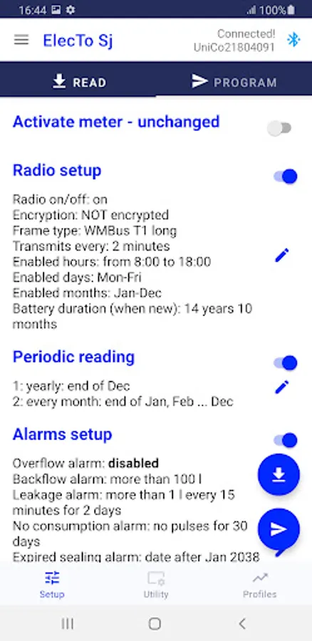 Programming and maintenance tool for Maddalena electronic water meter ElecTo Sj