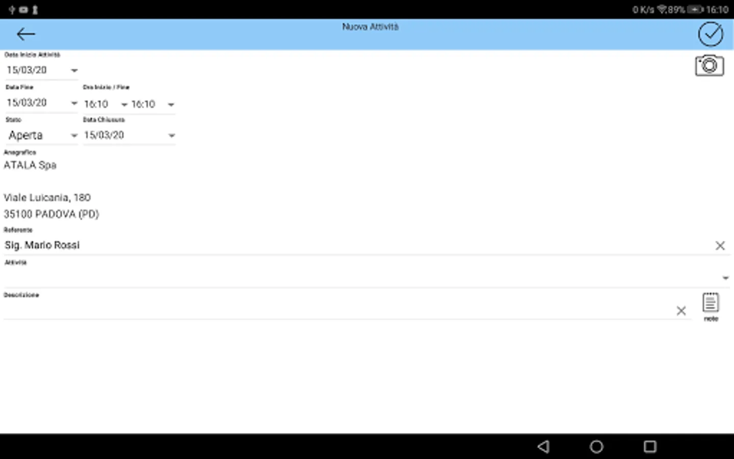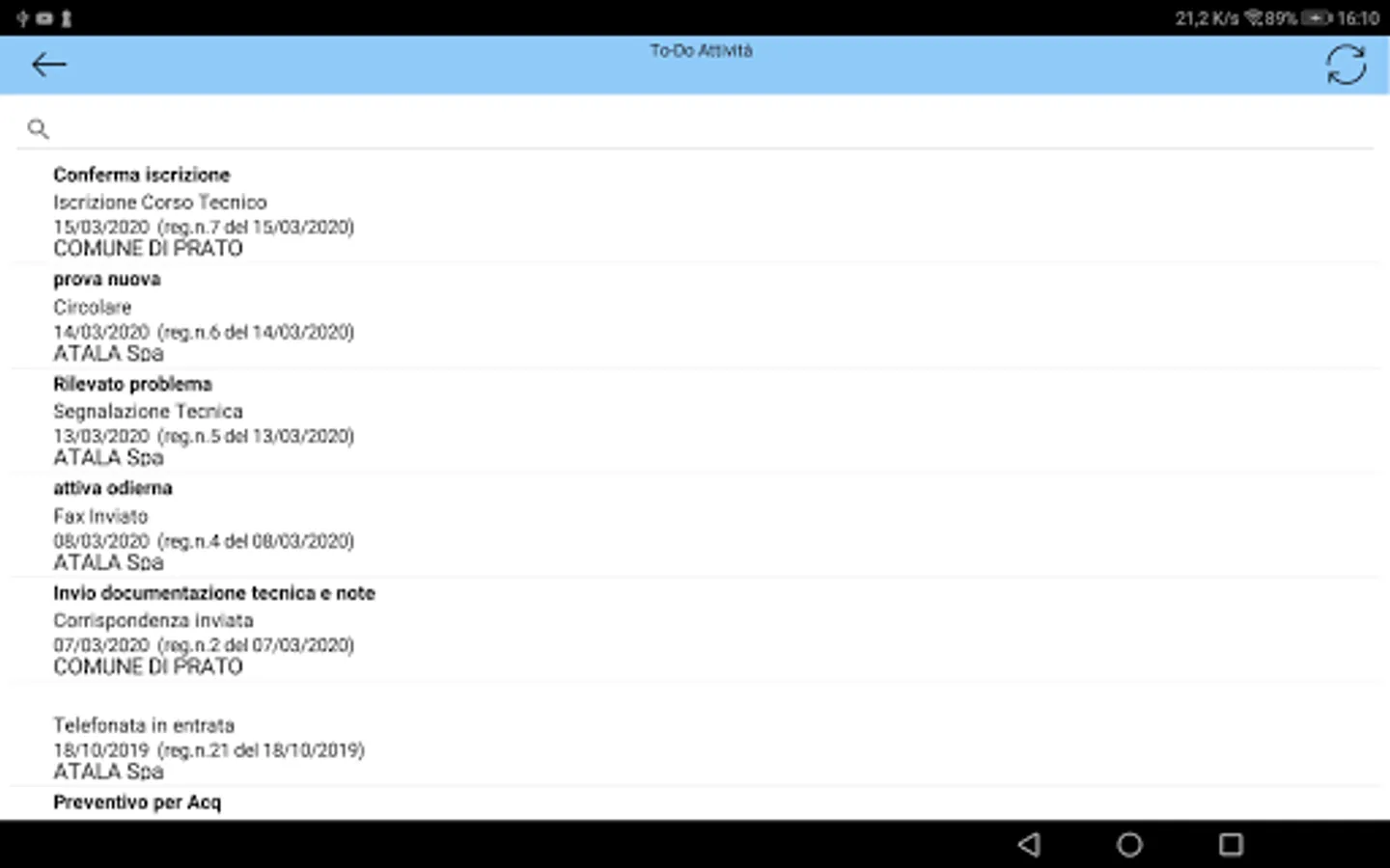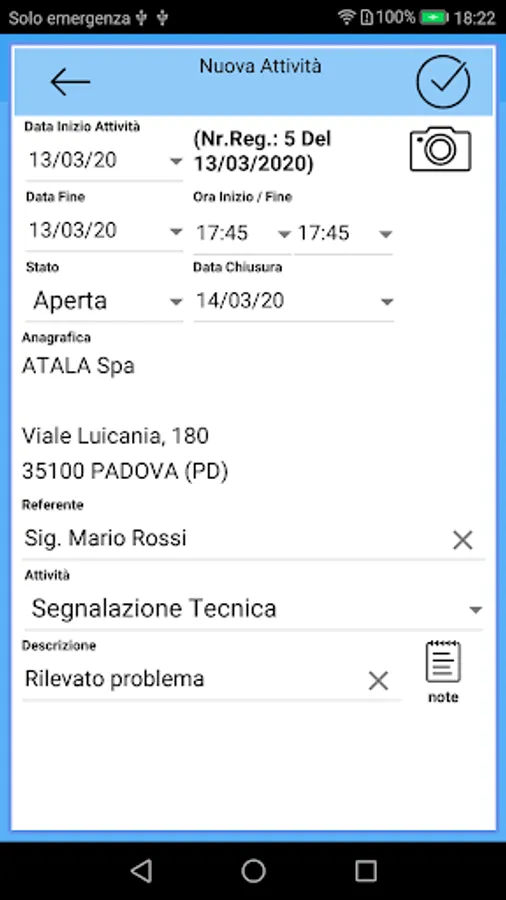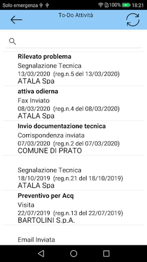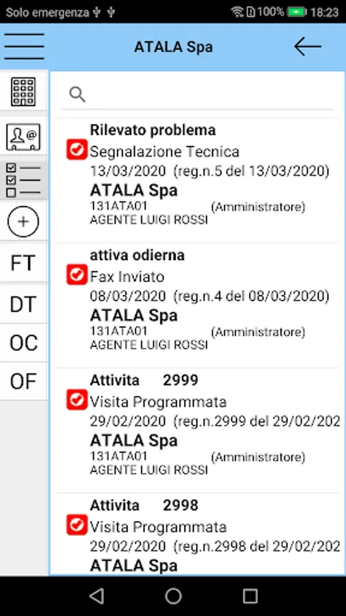The proposed solution works completely OnLine recovering from time to time the information requested in real time on the management and consequently updating also the data sent by the mobile device.