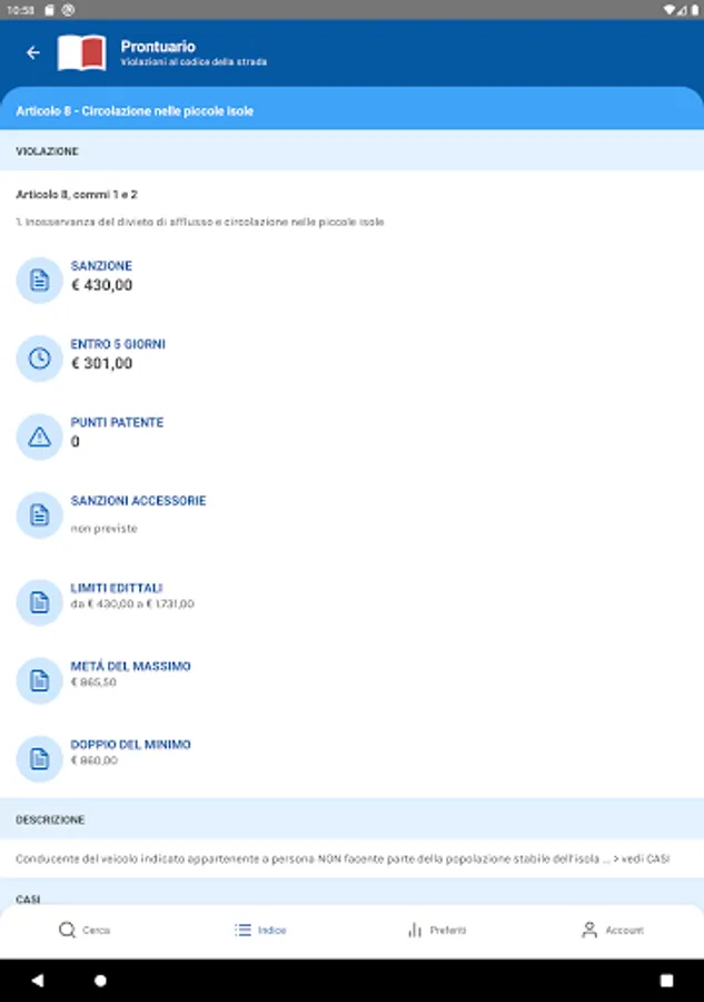The App allows quick consultation of the "Handbook of traffic violations", even on the move on your smartphone.