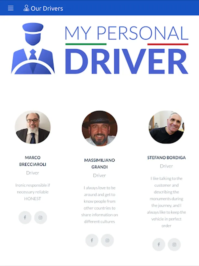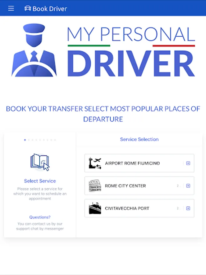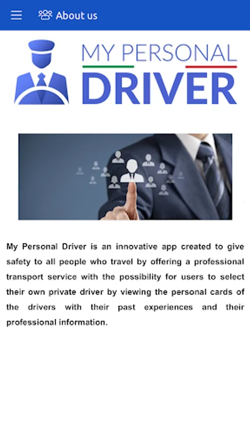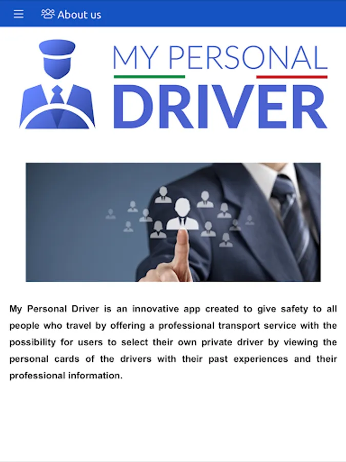 My Personal Driver is an app that allows you to book your transfer by choosing your personal driver as well as the place of departure and arrival. In fact, at the time of booking you can choose your driver, by browsing the various personal and social cards of the drivers, once you have booked your transport, you can contact your personal driver directly.