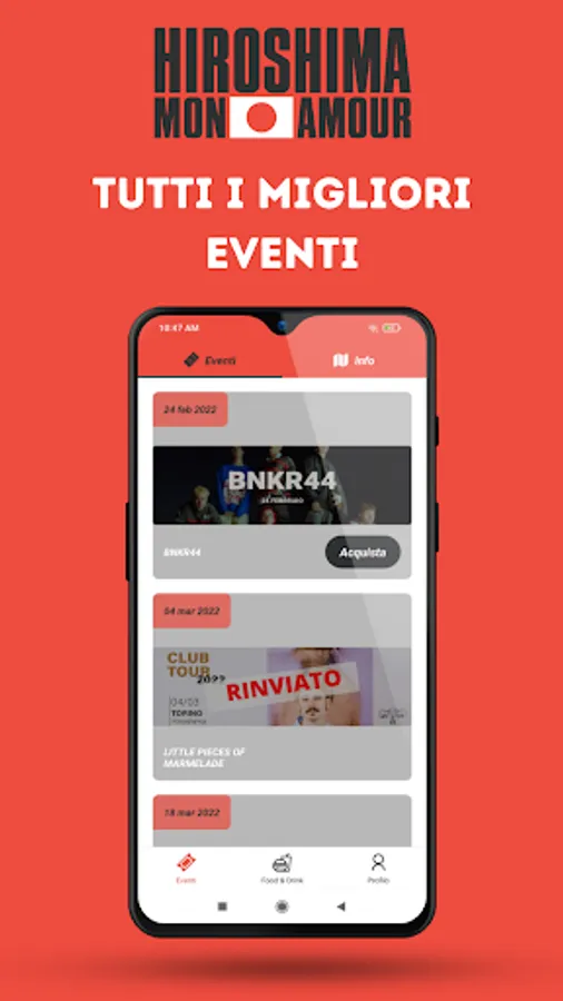 Hiroshima Mon Amour in è una App che consente agli utenti di ordinare cibo e bevande utilizzando il proprio smartphone all’interno delle arene Hiroshima Mon Amour. L'applicazione permette anche di pagare on line quanto viene ordinato e di acquistare biglietti per gli eventi all’interno delle arene Hiroshima Mon Amour
