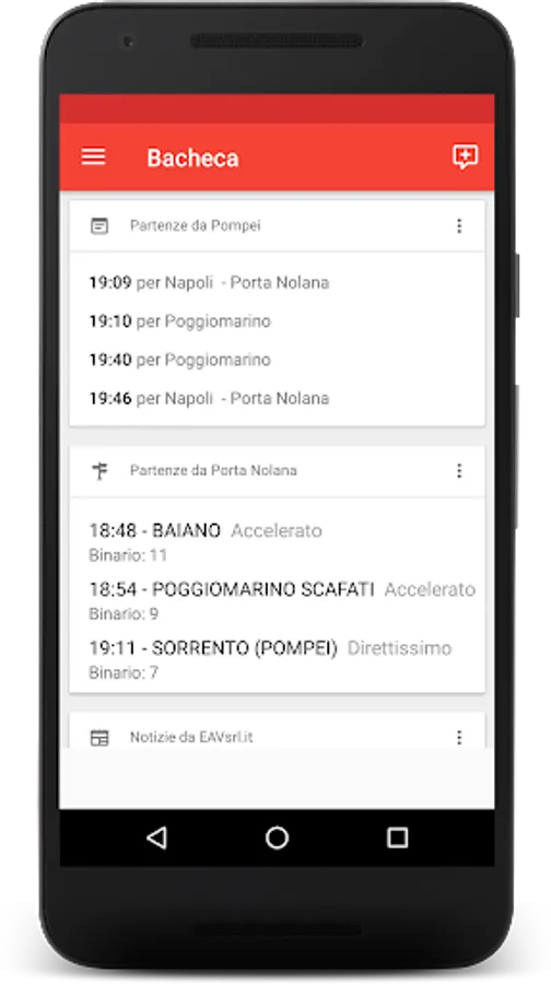 This application is not OFFICIAL, was neither created nor issued by EAV, a body of the train service Circumvesuviana. The app uses data from the site www.eavsrl.it and is not responsible for any errors or incorrect nature of the information.