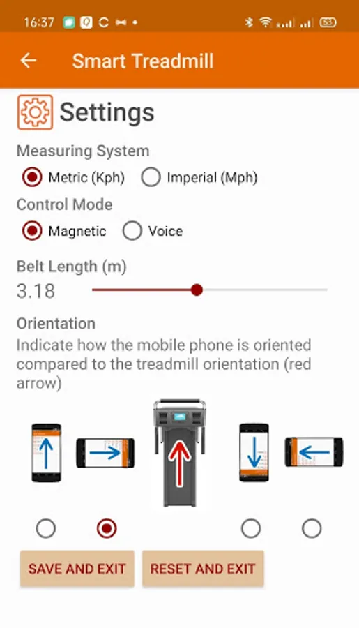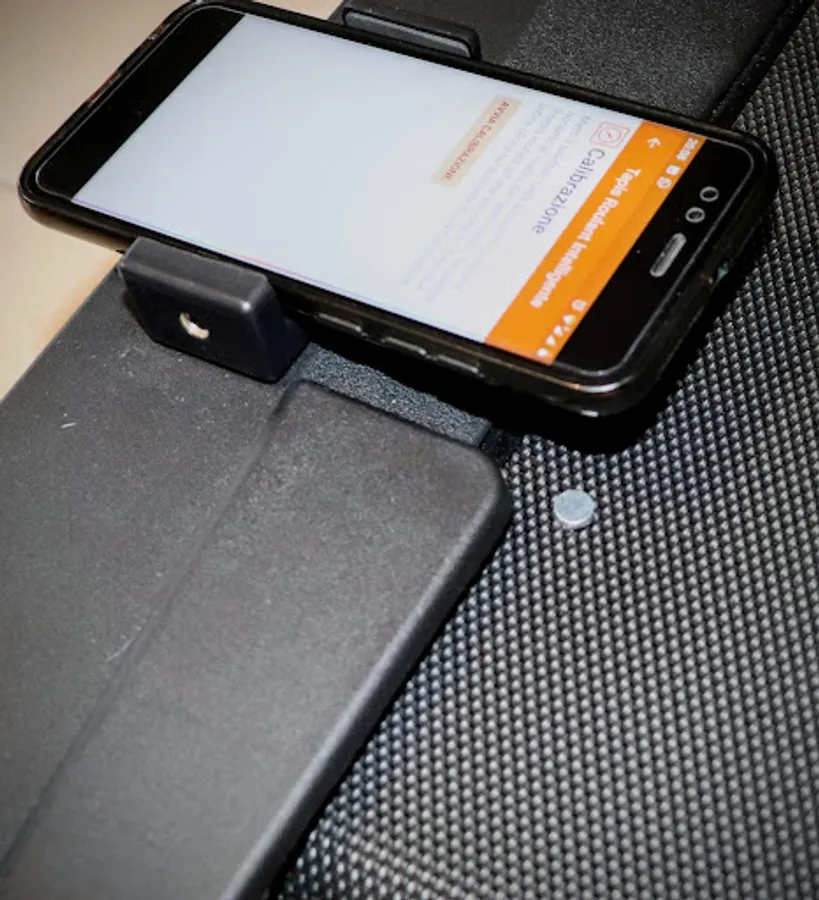 The calculation of the speed is based on the mobile phone's magnetic field sensor. If we put the phone sideways on the chassis of the treadmill and glue a magnet on the belt of the treadmill so that, when the treadmill is in action, it passes very close to where the phone's magnetometer is located (in phone's upper part), the mobile phone will interact with the magnet in such a way as to be able to identify the speed of the treadmill belt.