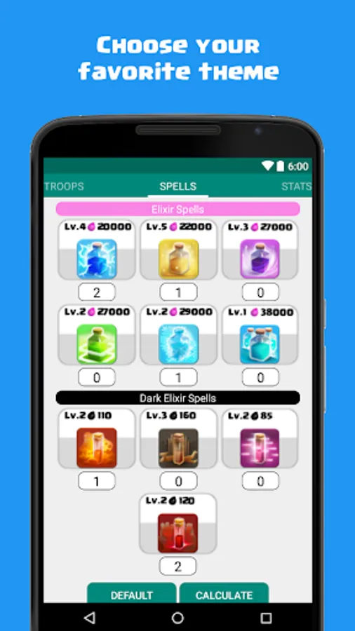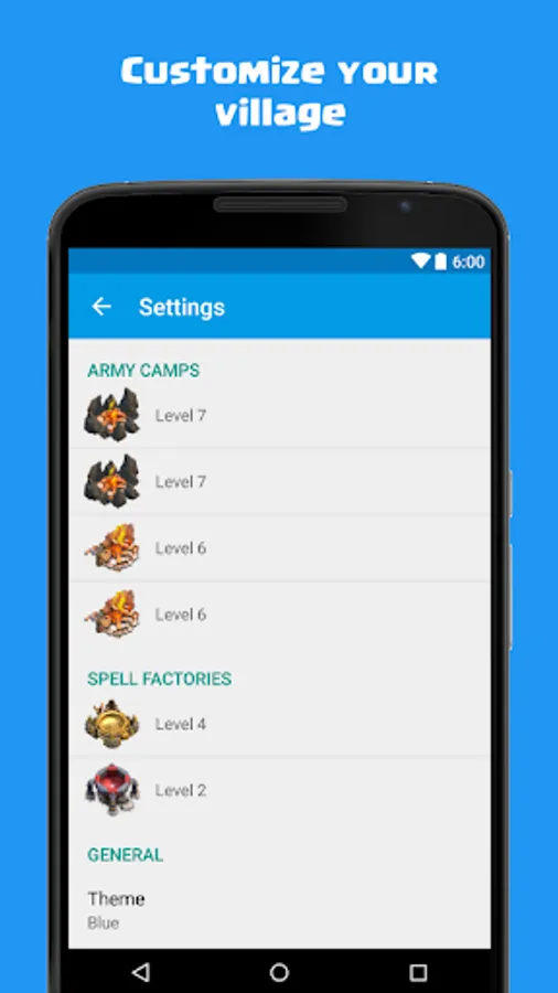 • Set the level of your troops and your spells