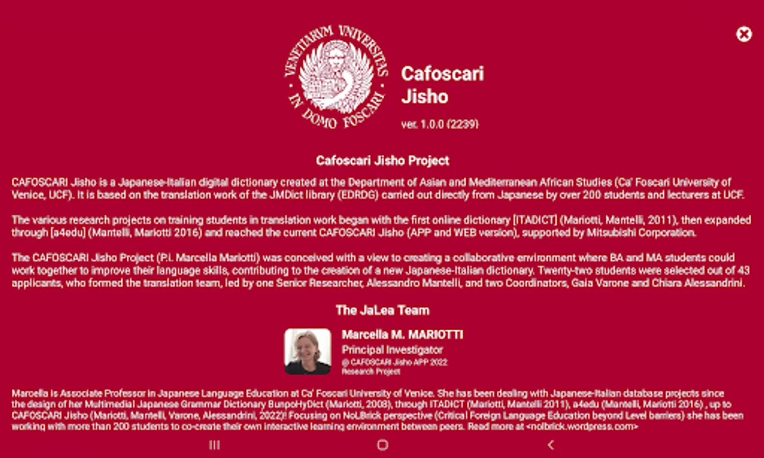 Built together with Japanese teachers and students at Ca 'Foscari, you can use CAFOSCARI Jisho APP even OFFLINE: useful for exams;)