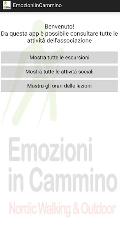 With this app it is possible to consult all the excursions, activities and lessons of the various groups of the association Emozioni in Cammino
