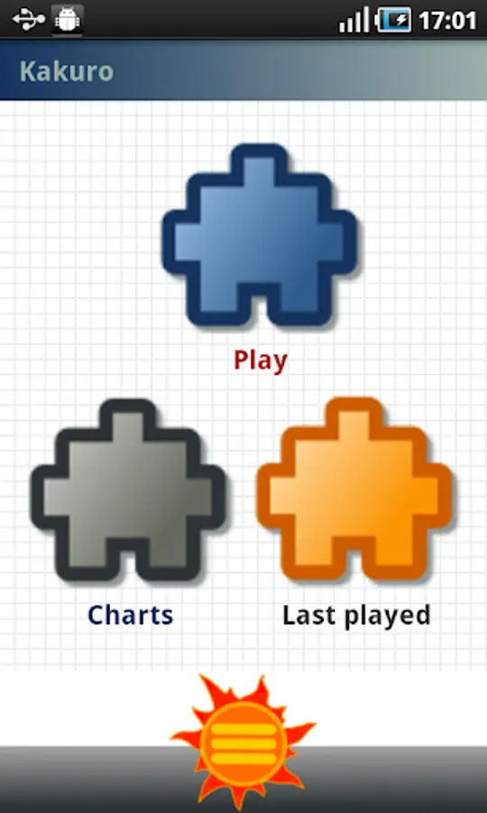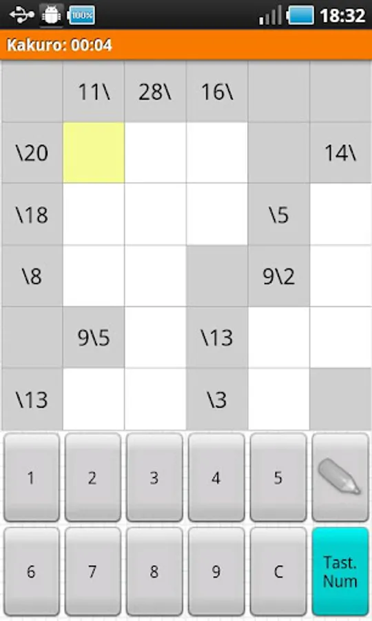 The canonical Kakuro puzzle is played in a grid of filled and barred cells,
