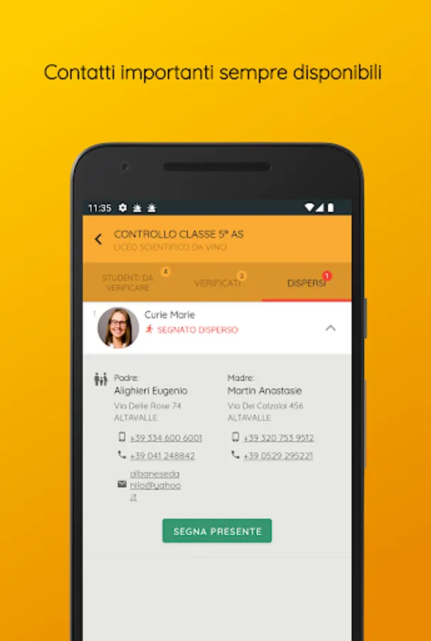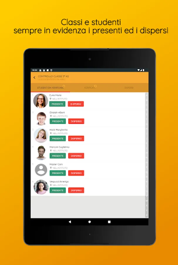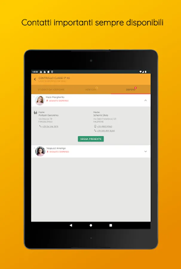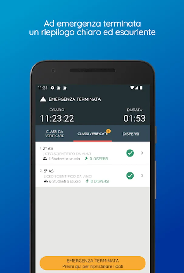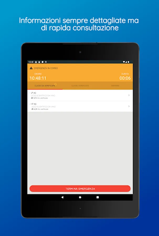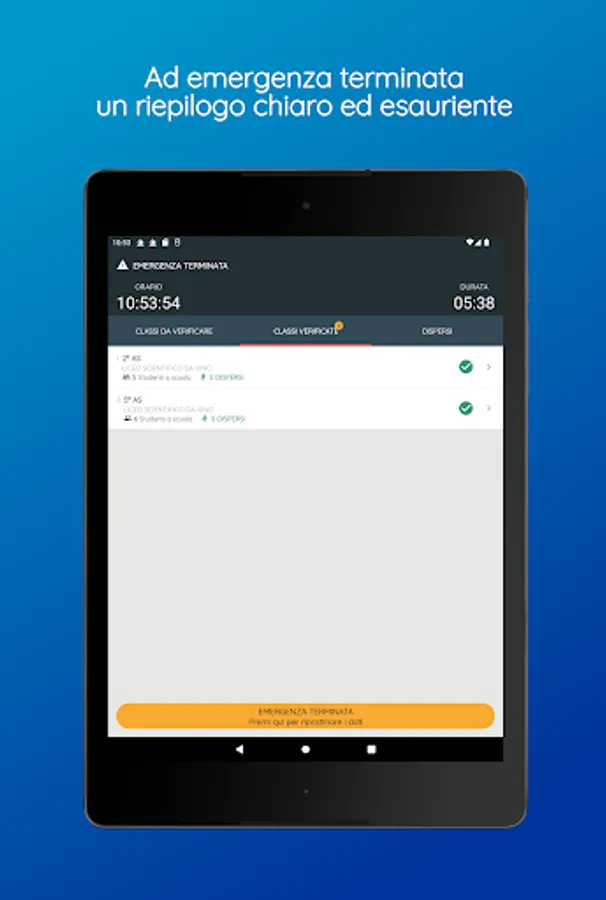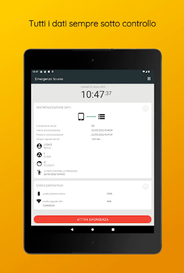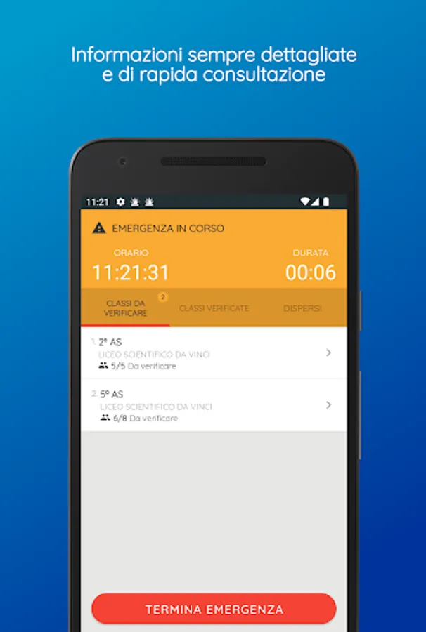This app allows the school staff in charge to carry out the operations necessary for the management of emergencies in compliance with the provisions of the law.
