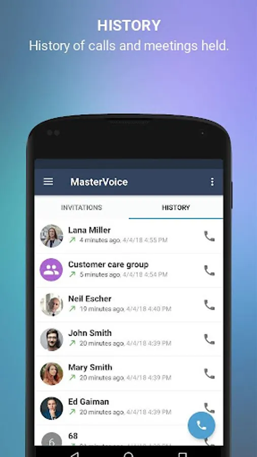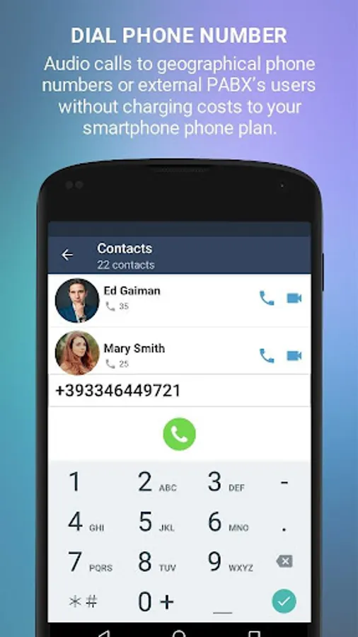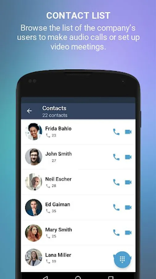 • Visibility of the other company users without having to have them in the smartphone’s address book.