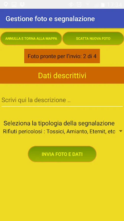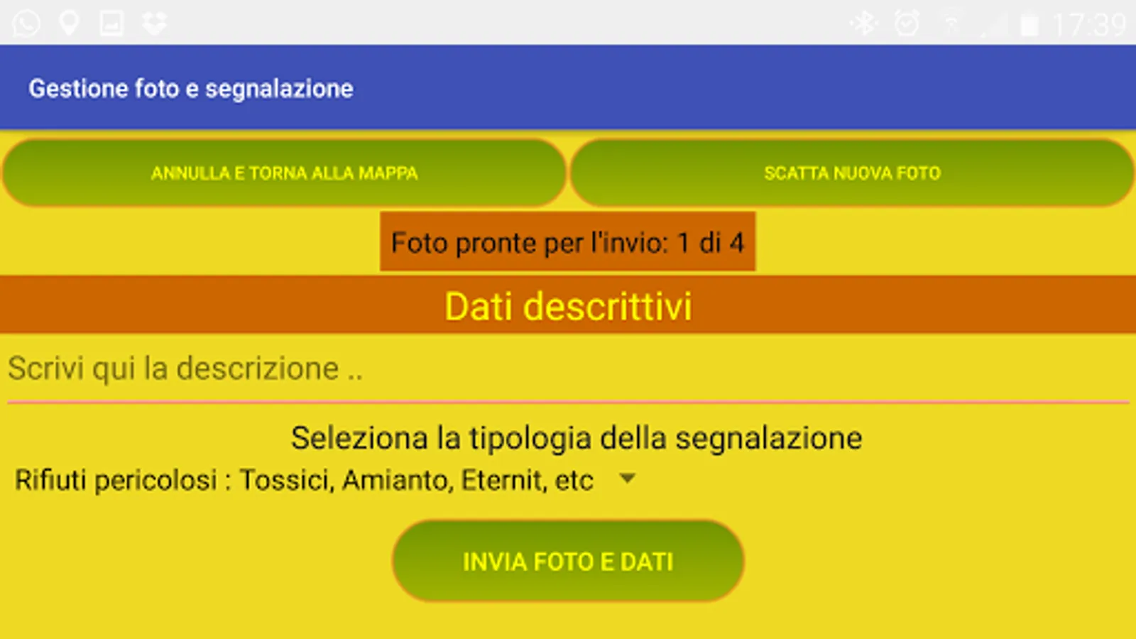 Its purpose is to provide the opportunity for a mapping of the territory in order to report, via signaling camera and GPS positioning, all those events that fall into the following categories: