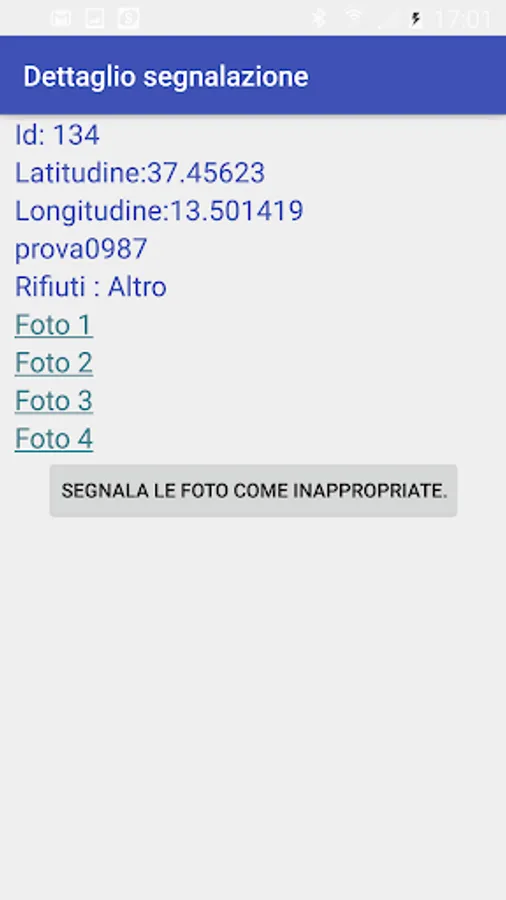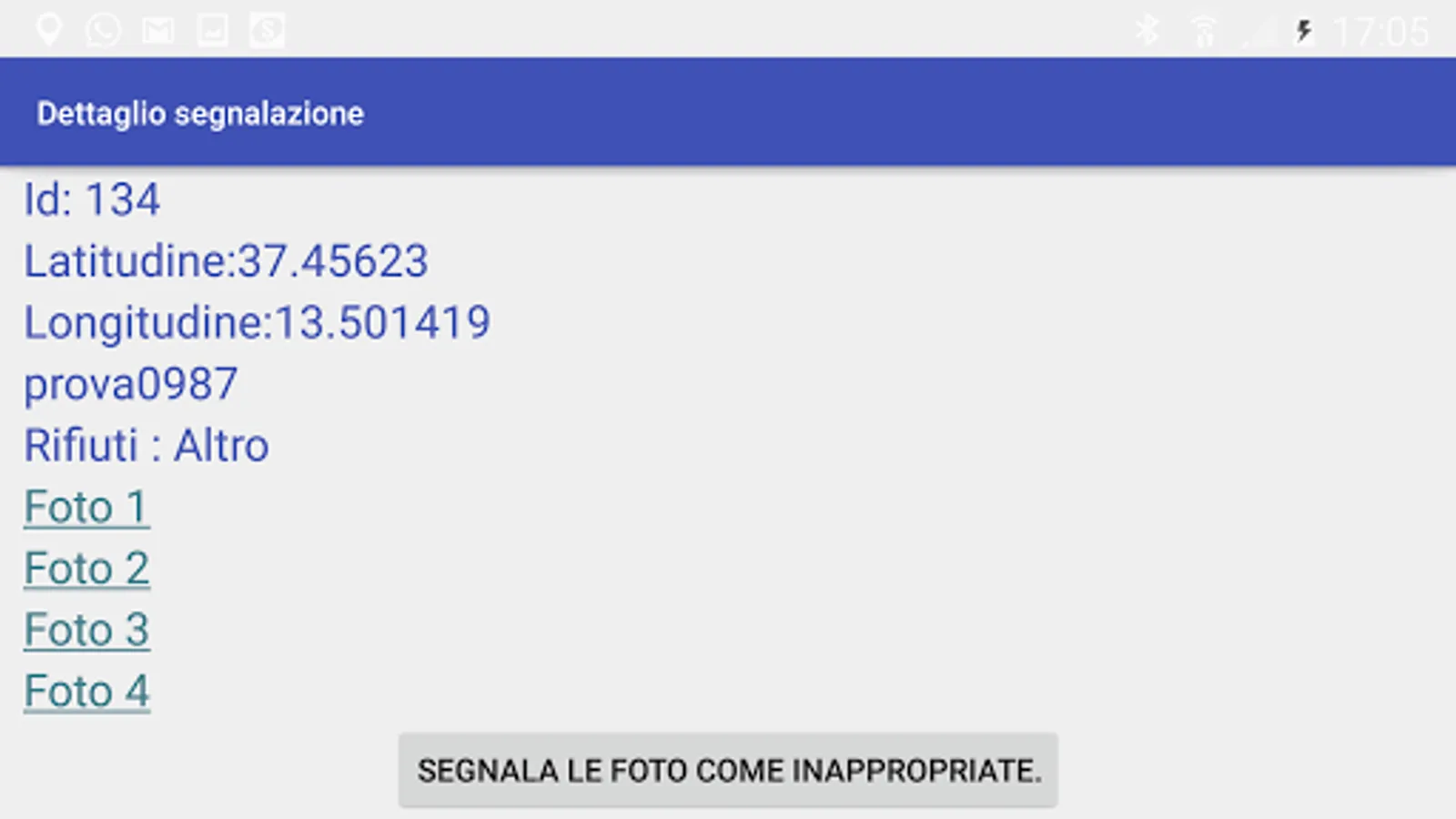 All the messages are conveyed in a database and be made public by placement in a geographic map of Google Map, freely accessible by anyone. This map will be present all reports, localized by GPS, and all the attached photos.