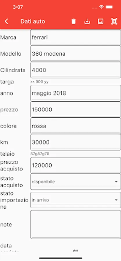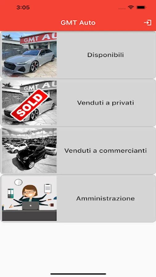 App for the management of a car showroom with storage of 4 types of deadlines, cars available, sold to individuals or other car showrooms, storage of documents and images of cars, with management of different levels of access based on the user.