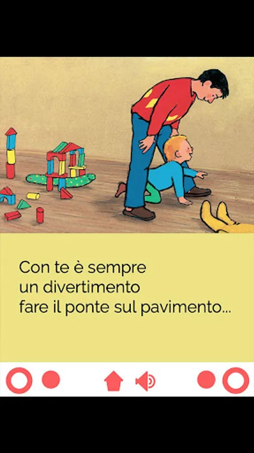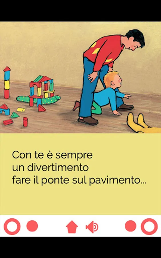 A boy plays with his dad. The text rhymes, the illustrations evoke the full range of positive emotions, making reading aloud a pleasant moment. Symbolic writing is reduced to the essential, rooted in the daily lexicon. At the tap on the pictures the children will discover the characters, objects and actions that characterize the story.
