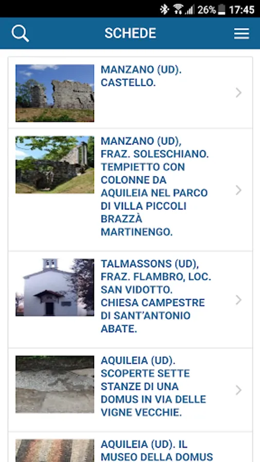 This App has been chosen to host mainly sheets for the cultural heritage of historical and archaeological type of Friuli Venezia Giulia, in the spirit of the statutory aims of the Association Friulian Society of Archeology non-profit organization.