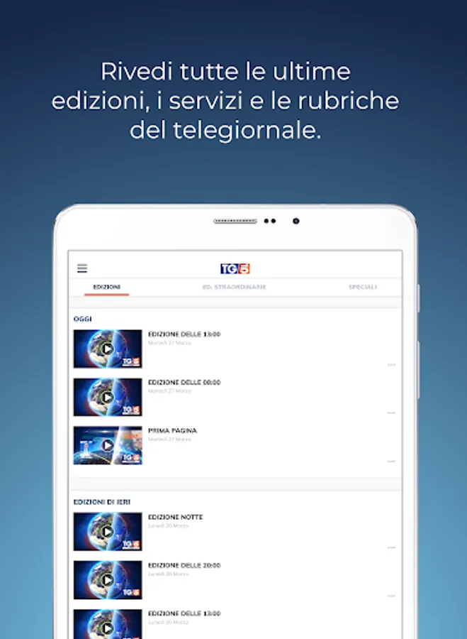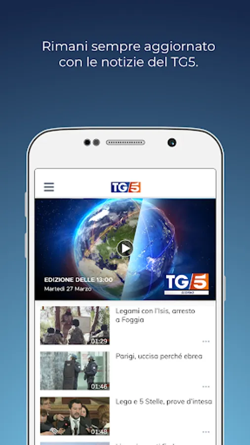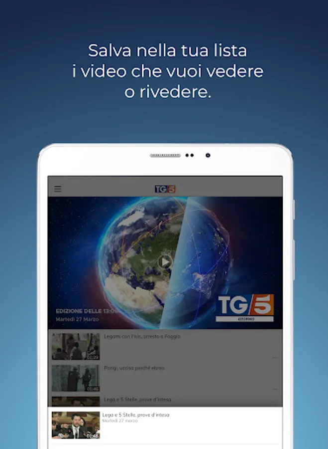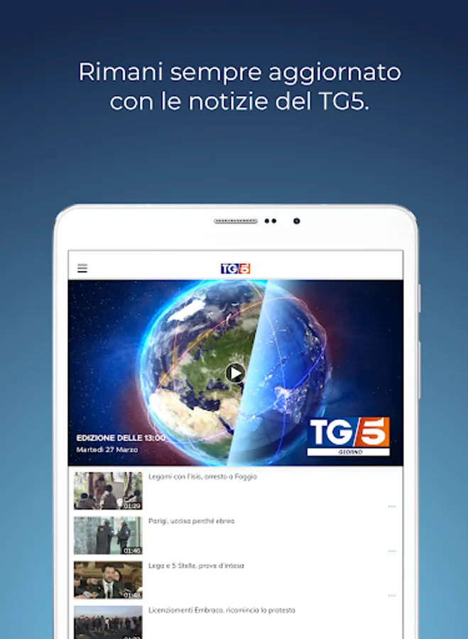 Enter the world of information with the new app TG5: renewed in graphics, fuller in content, more accessible and faster navigation.