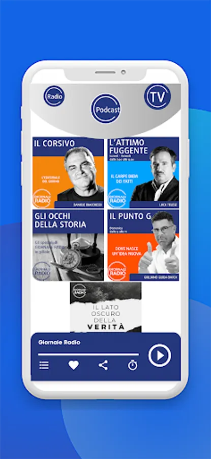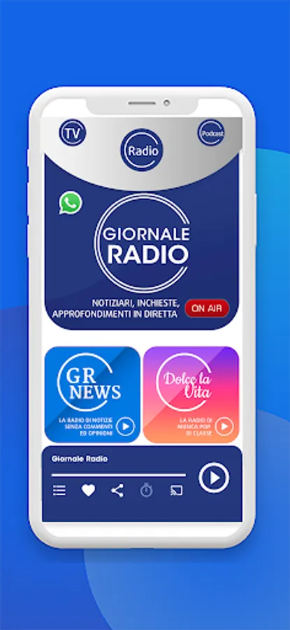 • We have 2 thematic radios, in addition to the main stream of "Giornale Radio", designed to satisfy any information and entertainment need: from press reviews to sport, from the economy to culture, from technology to the environment, together with a musical offer and quality entertainment.