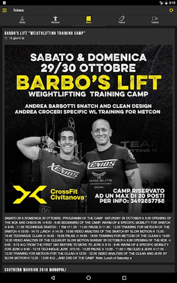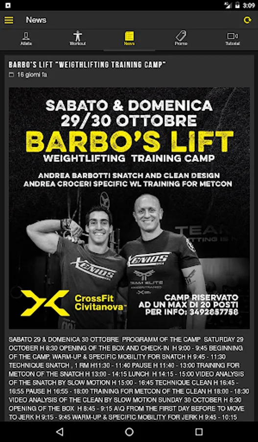 It is the App Team Elite powered by CrossFit Civitanova. You will find your exercise program designed by Andrea Croceri Owner and Head Coach CrossFit Civitanova and Team Elite.