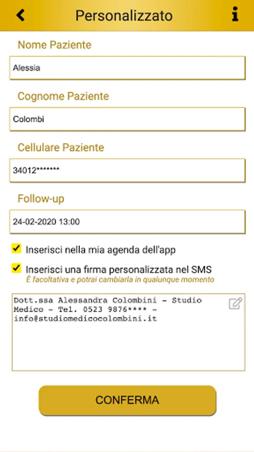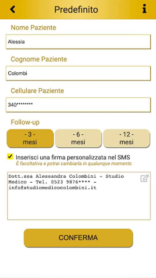 You can insert a personalized signature that will be displayed by the patient at the bottom of the SMS.