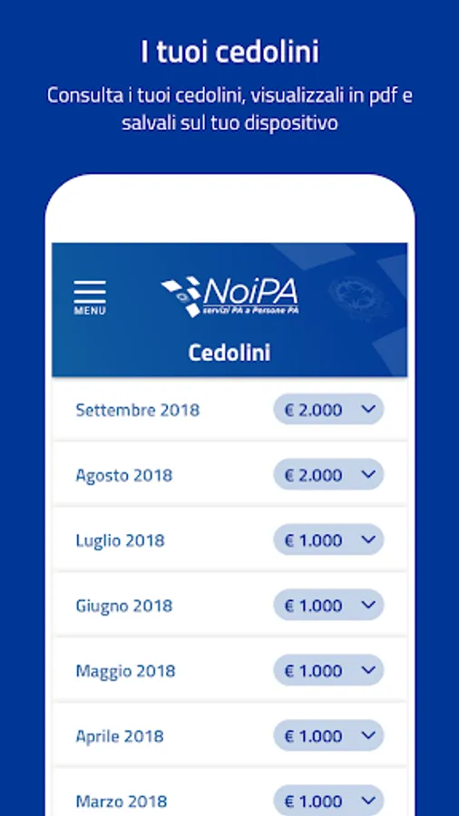 NoiPA is the official app that allows consultation of salary documents (payslips and unique certifications) processed by the NoiPA system