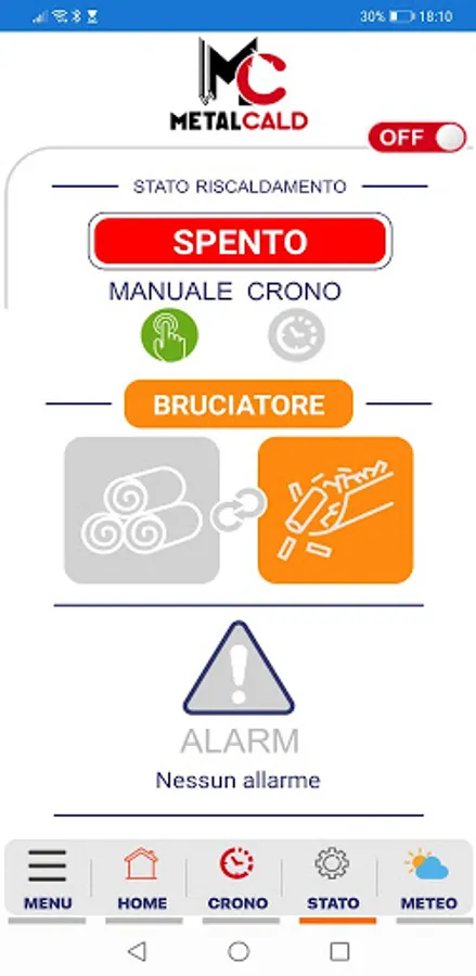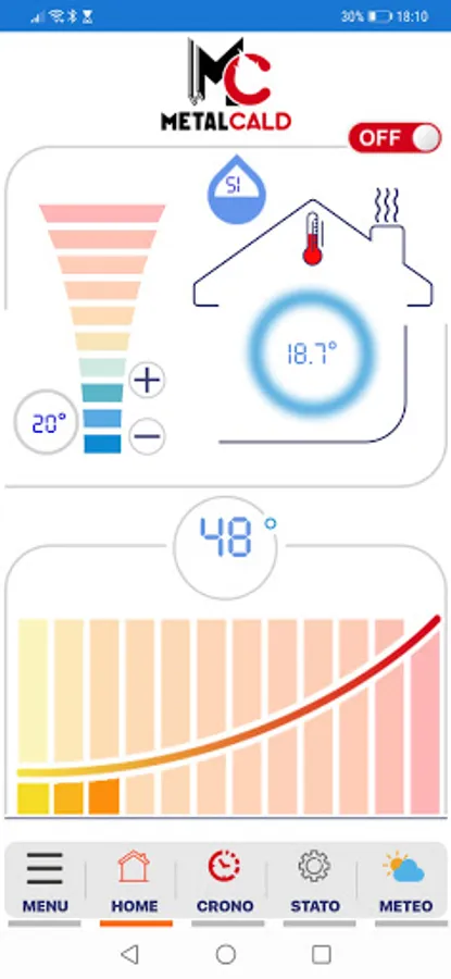 The Metal Cald application allows you to manage all the basic functions of your stove, through the use of smartphones and tablets, at home and away from home, with the use of a simple data connection available.