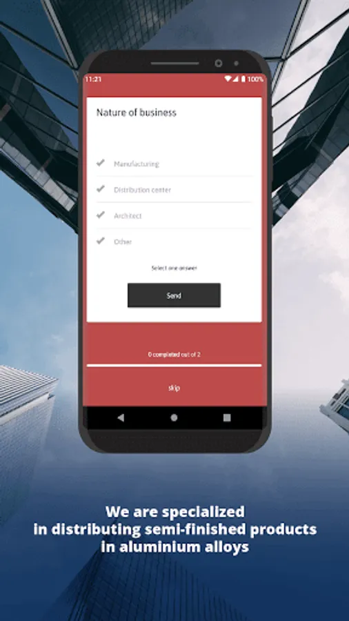 - send a free quotation request for prepainted aluminum or steel product directly from application