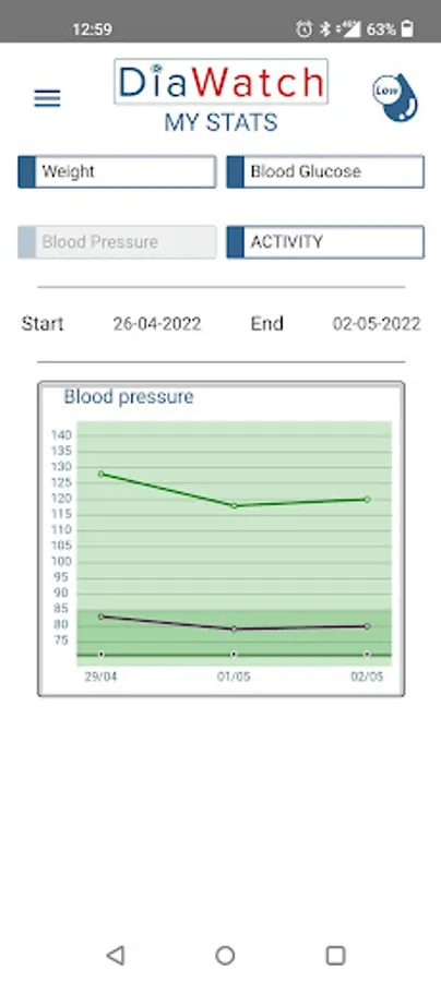 - See trend graph for blood glucose, weight, blood pressure and steps