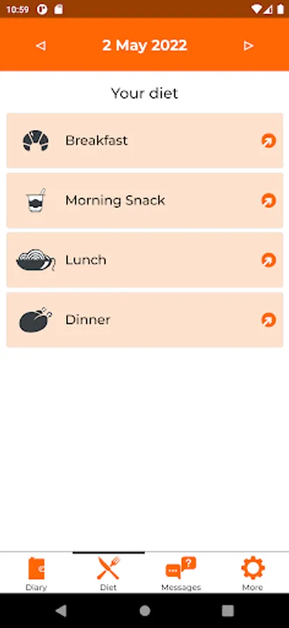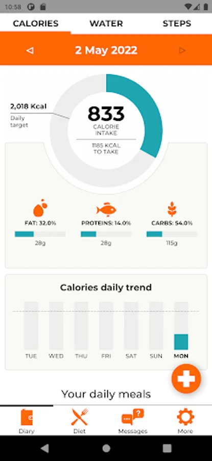 MetaDieta MyDiet is the application used by patients to receive nutritional advices from the nutritionist, record dietary diary, record physical activity, share the diary and exchange messages with the nutritionist.