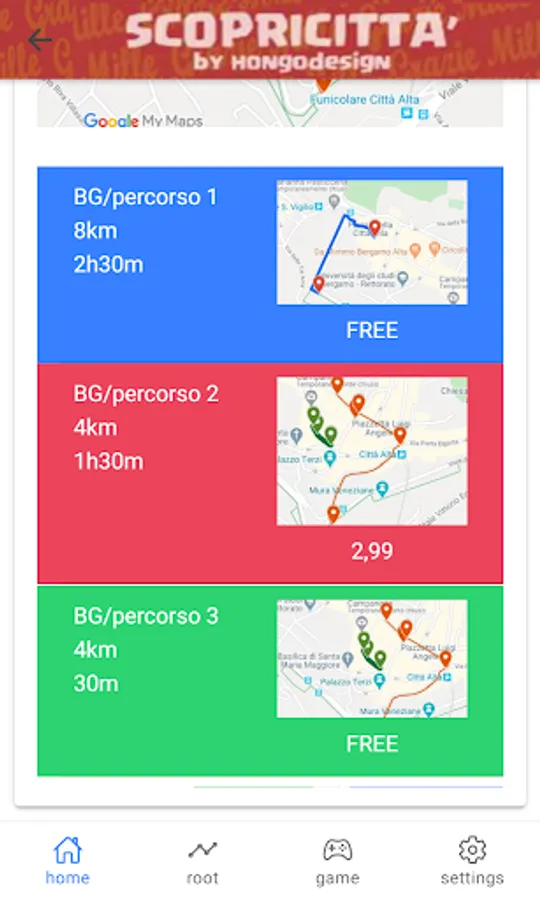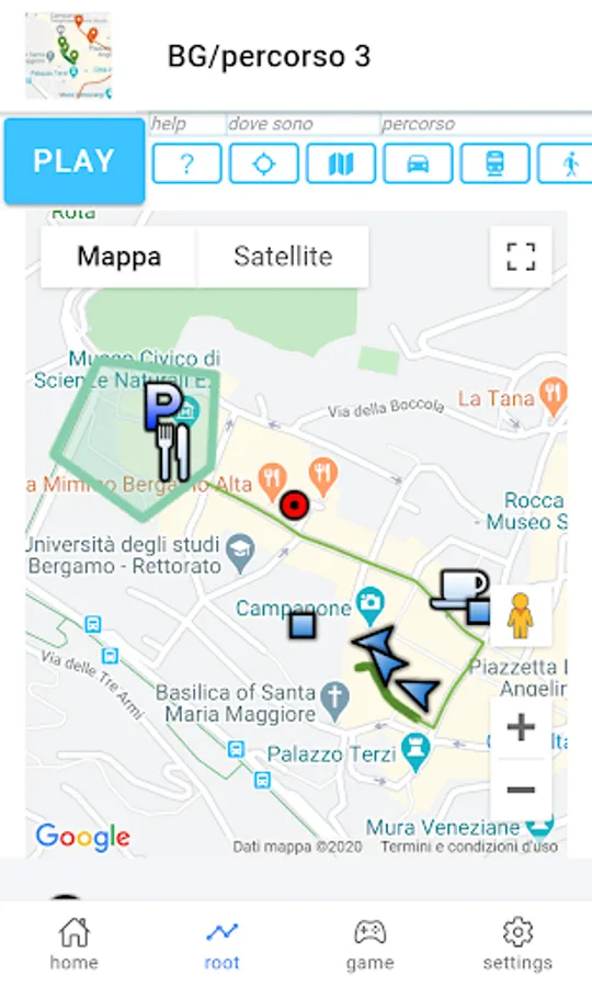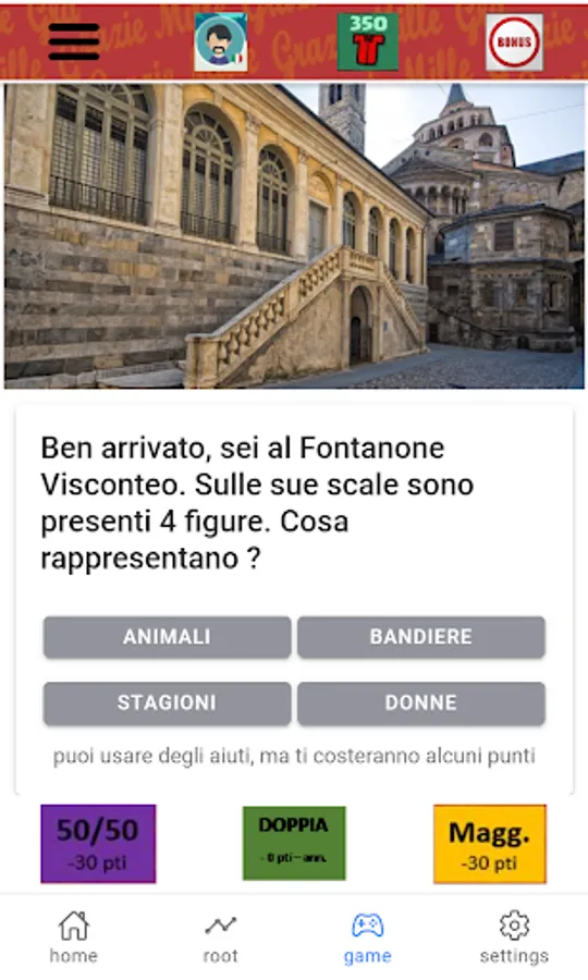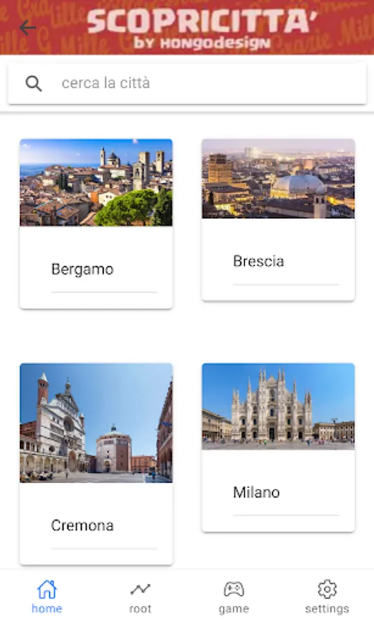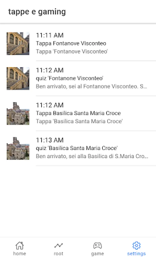 The APP, which is still a PROTOTYPE, allows you to enter the historical routes of the main Italian cities and characterize the various stages through the history, images and services available. Each stage features games and riddles to solve in order to proceed.