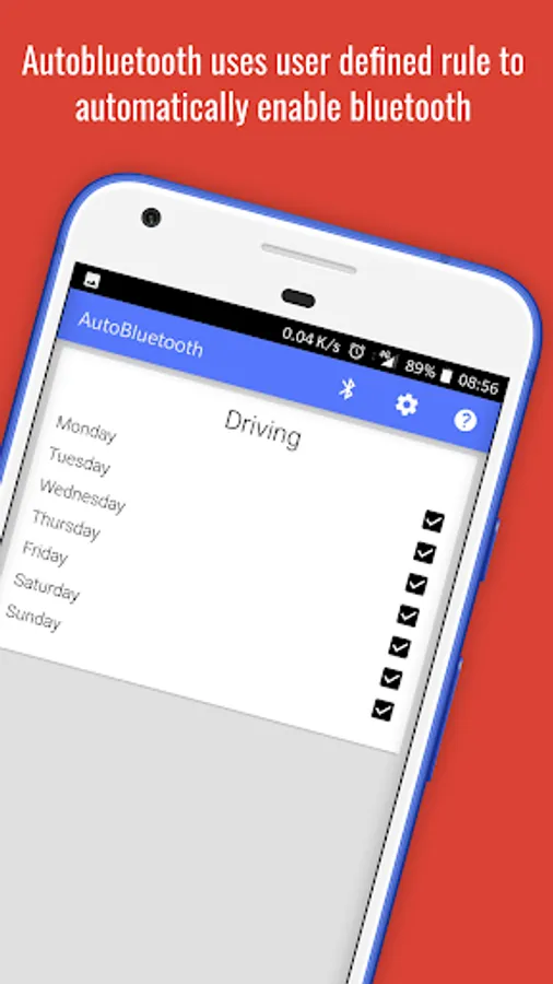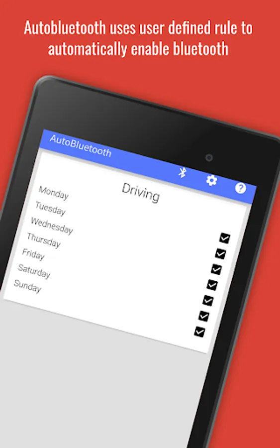 AutoBluetooth turns bluetooth on or off without any user interaction, based on the rules that the user set.