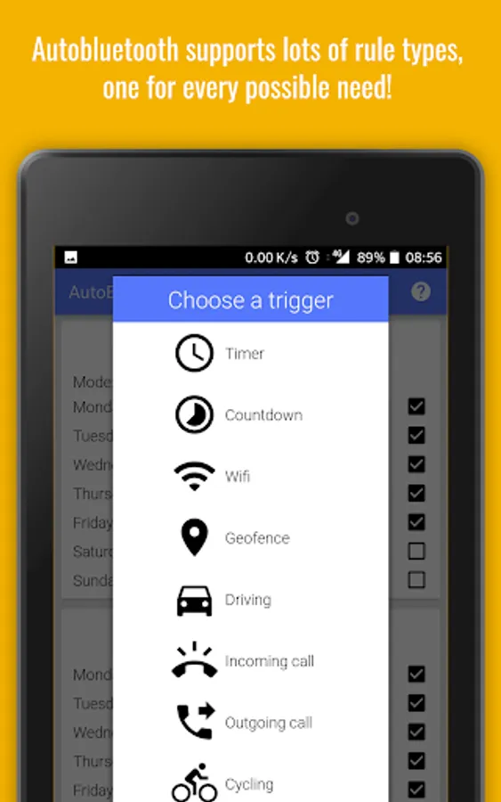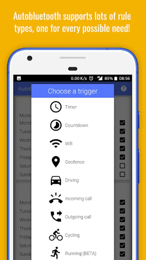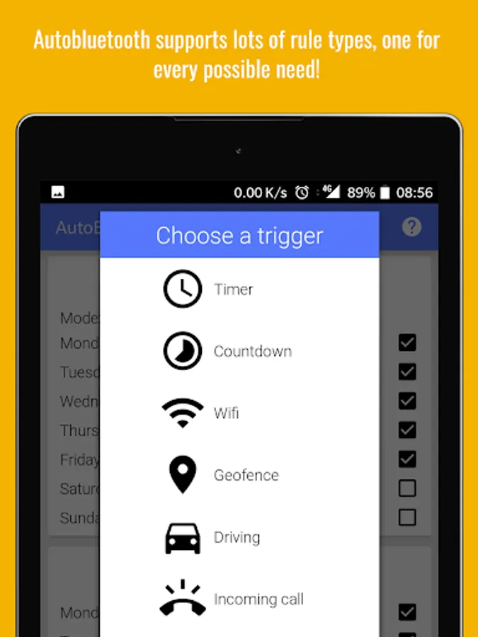 Auto Bluetooth is capable of detecting if the device is connected and can wait for its disconnection before turning the bluetooth off. This is particularly useful when the device connects during a timer activity and remains connected after the specified time.