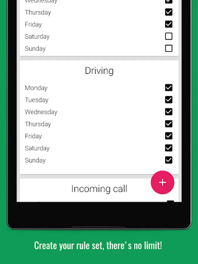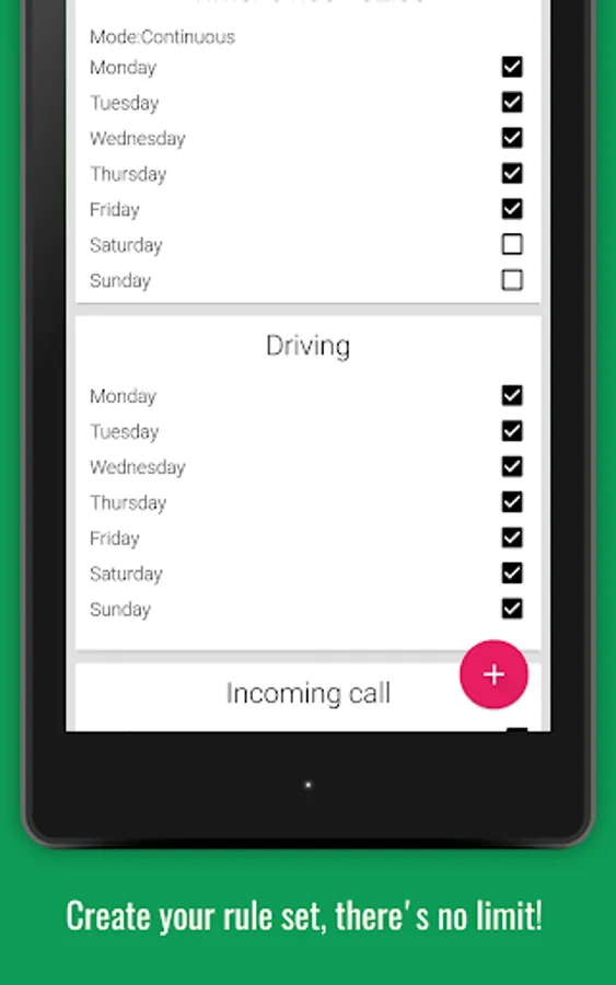 Incoming Phone call: User specifies in which days of the week BT have to be activated when the device receives a phone call.