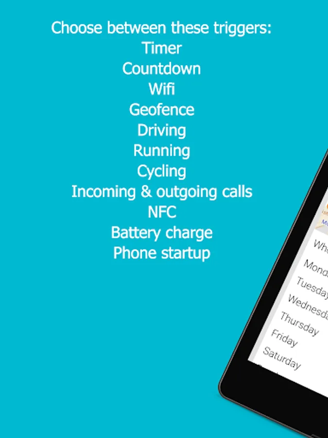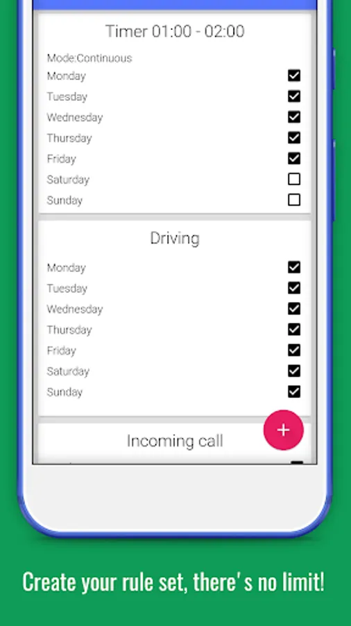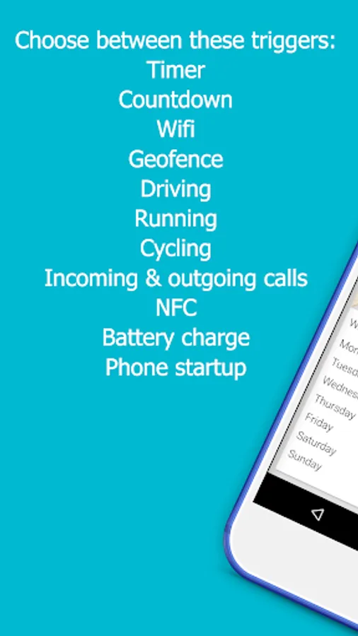 Timer: User specifies a time interval and specifies the days in the week where the rule shall turn BT on.