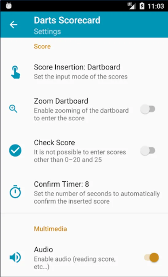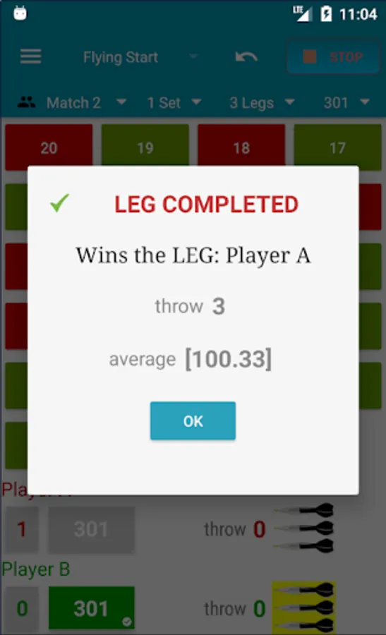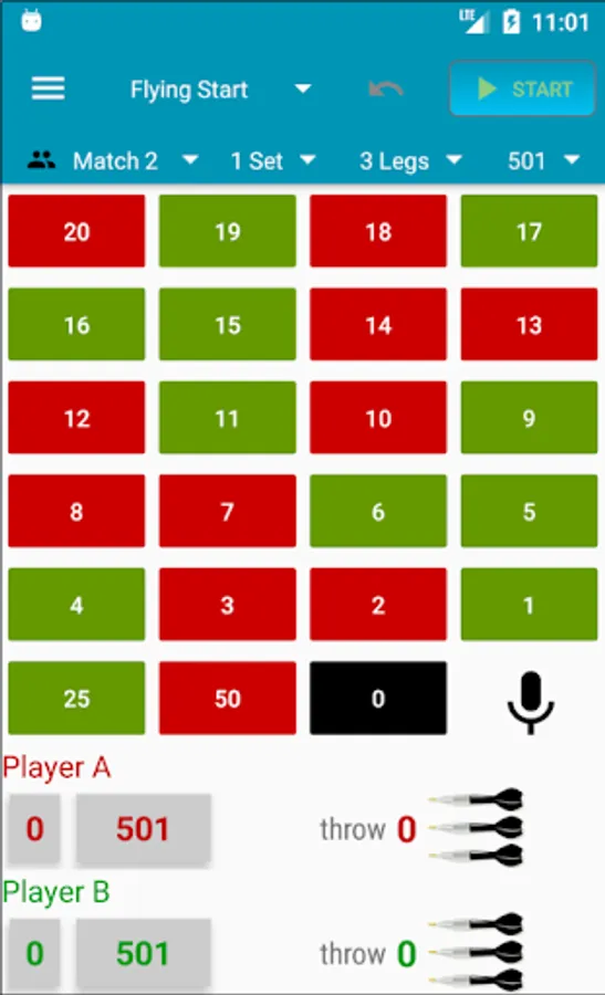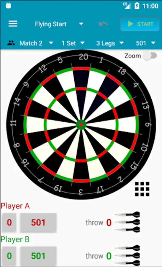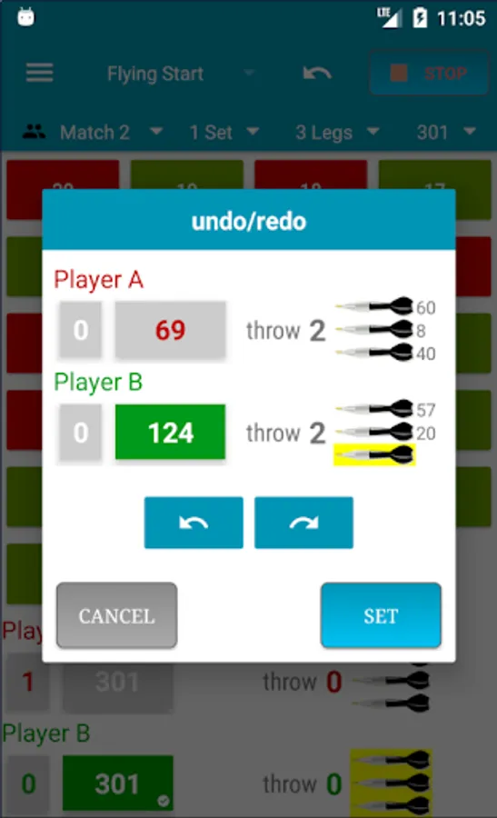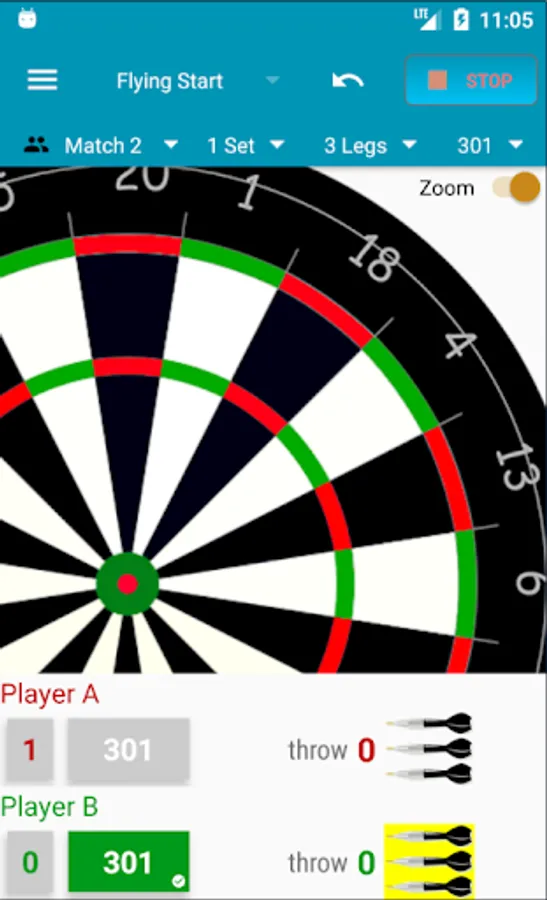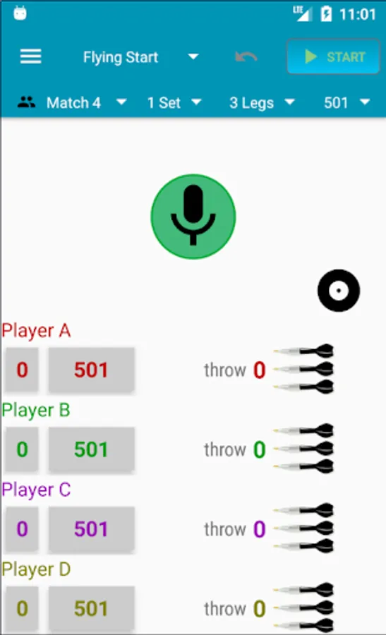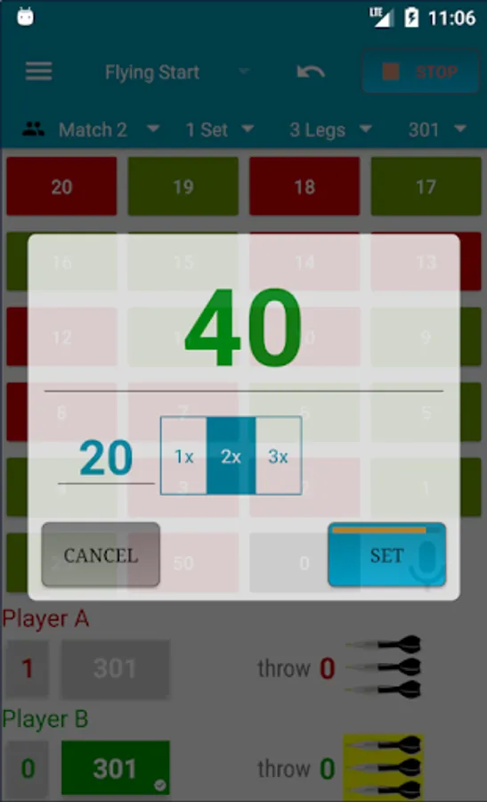 You can set the number of set, legs and score (301, 501, 701, 1001).