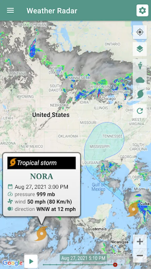 See hurricanes, tropical storms, cloud cover and amount of rain on the map in real-time.