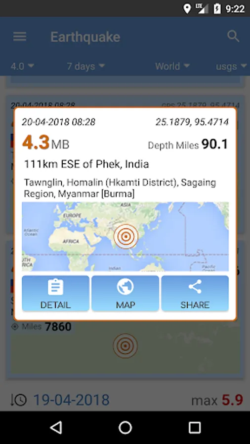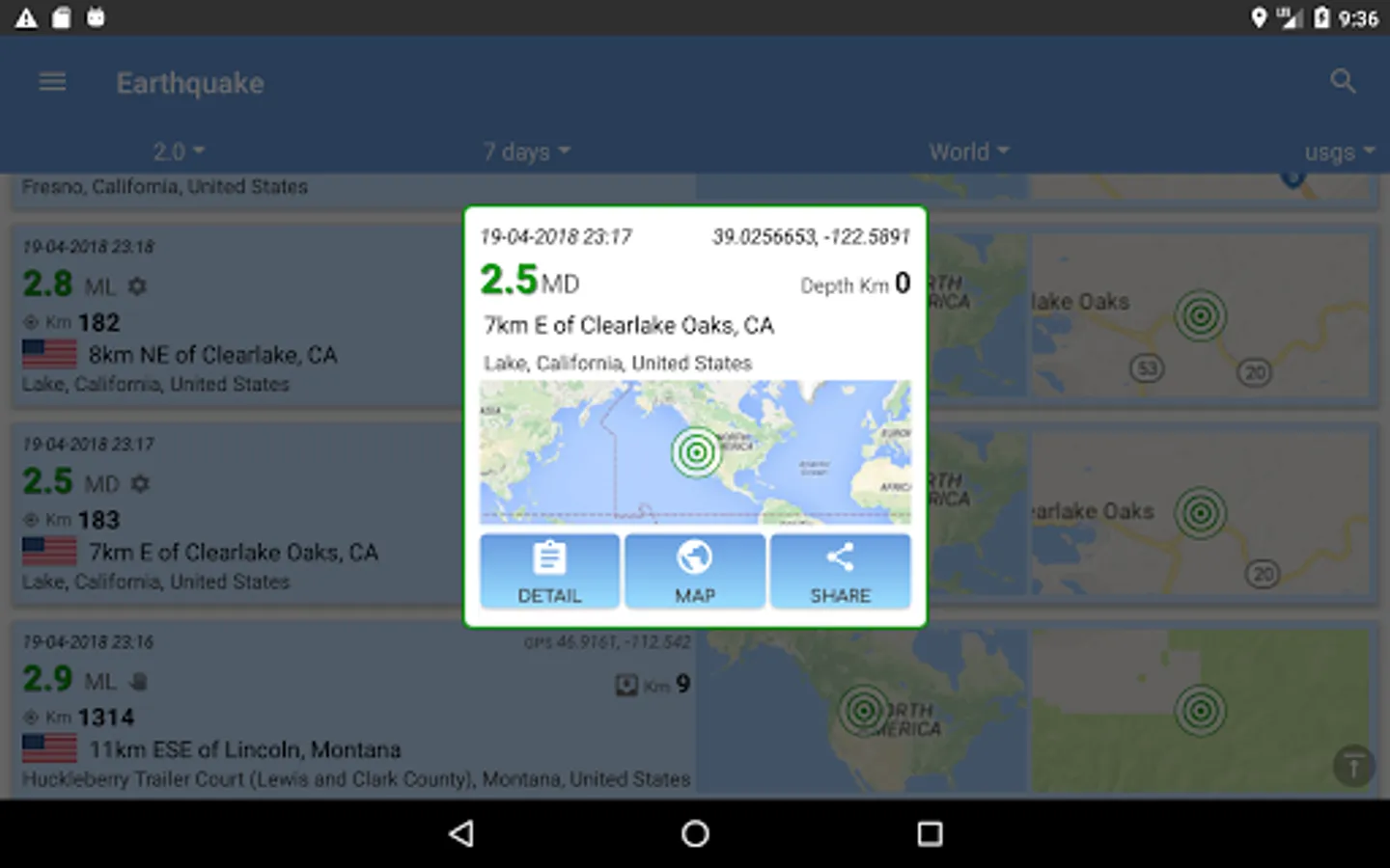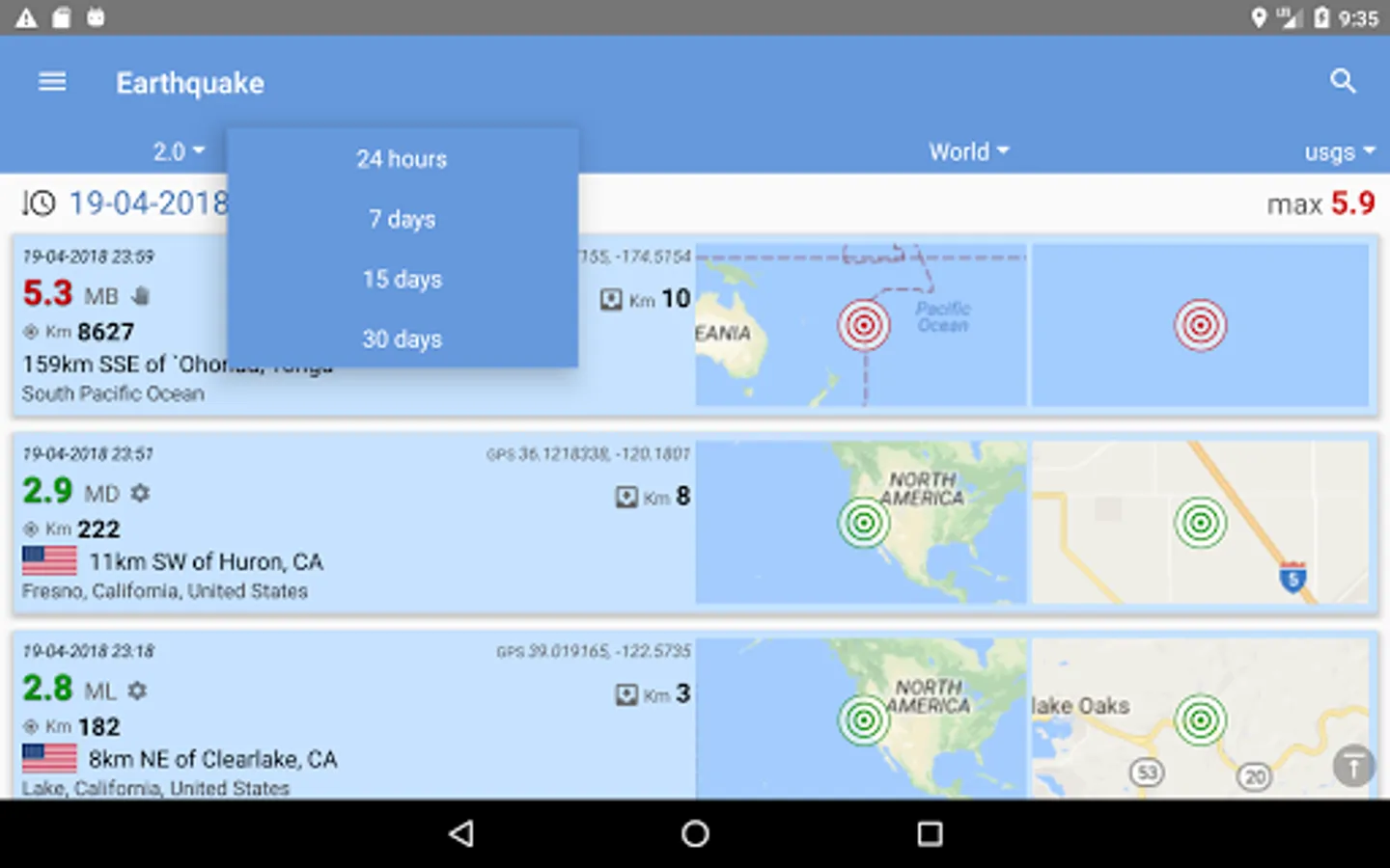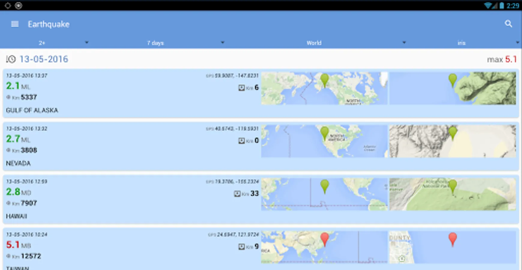 Earthquake is an app for Android devices that shows real-time earthquakes occurred around the world.