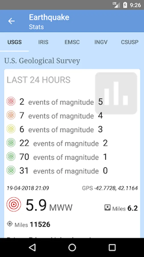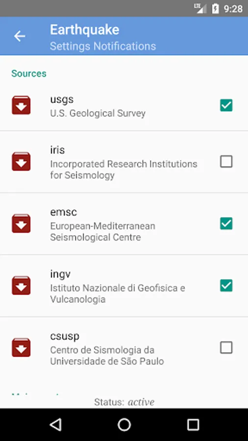 There are several sources of seismic events: USGS, EMSC, IRIS, INGV, CSUSP, GEONET.