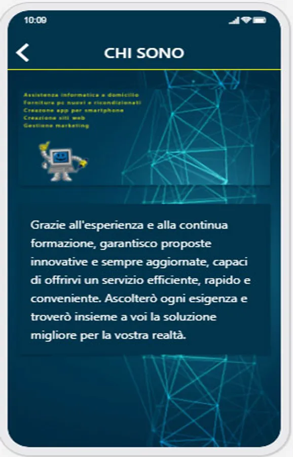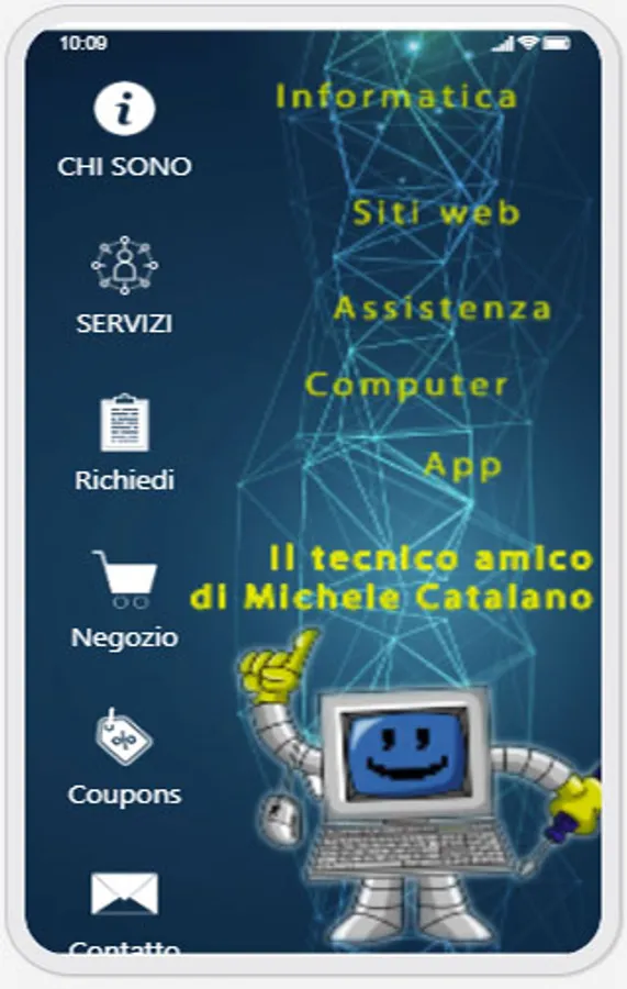 The technician friend of Michele Catalano deals with IT assistance and consultancy, consultancy on mobile marketing and creation of smartphone apps, consultancy for WOLNET internet contracts.